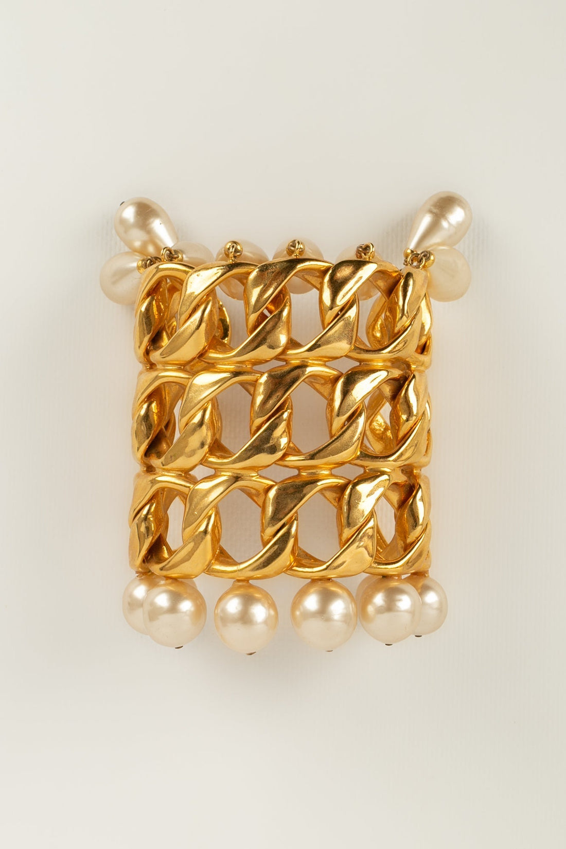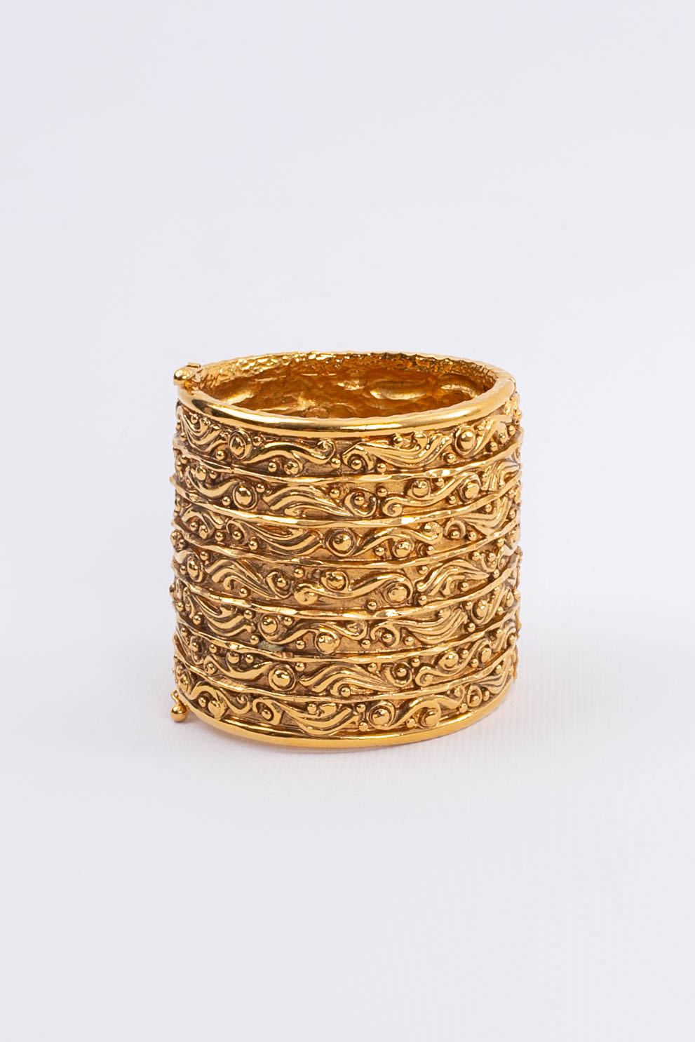 CHANEL -(Made in France) Bracelet manchette en métal doré. Bijou datant des années 1980. Condition...