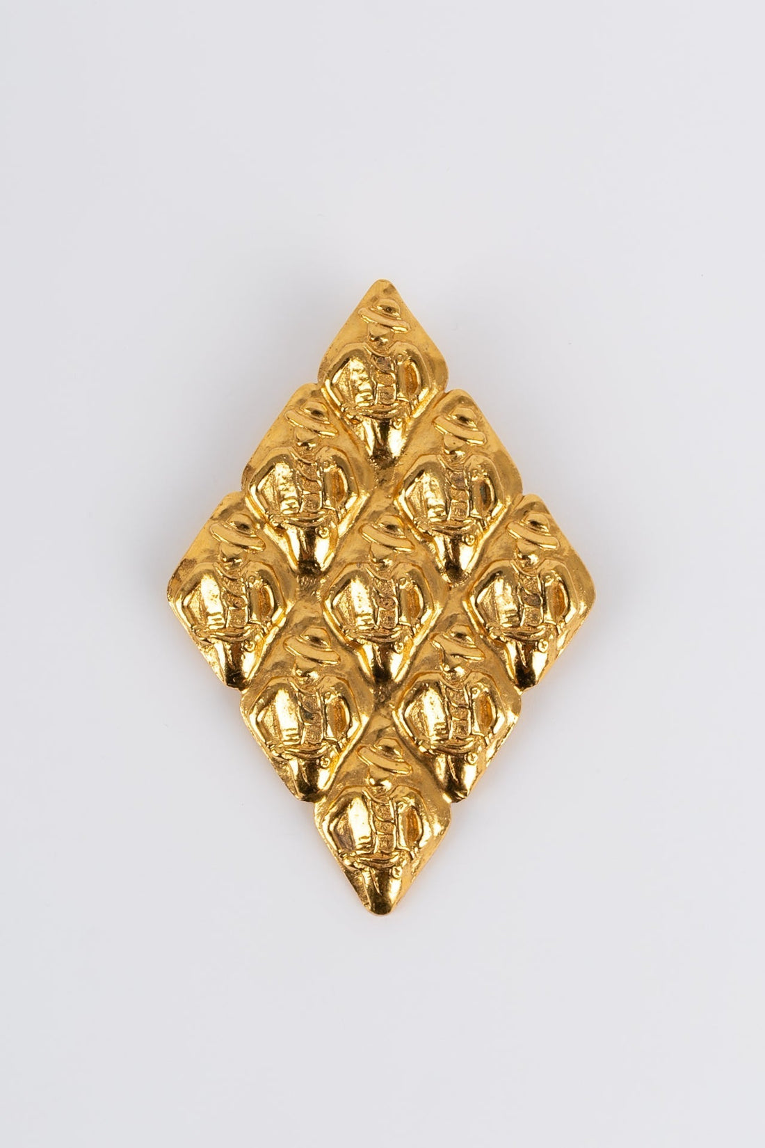 CHANEL -(Attribu�e �) Broche en m�tal dor� ajour� et cabochons en p�te de verre retenant...