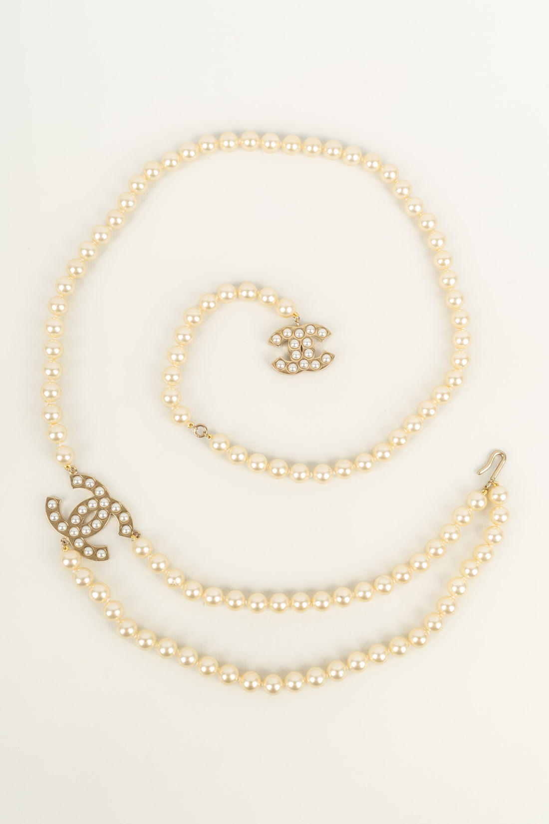 CHANEL -Ceinture de perles nacr�es et p�te de verre verte. Condition : Tr�s bon �tat...