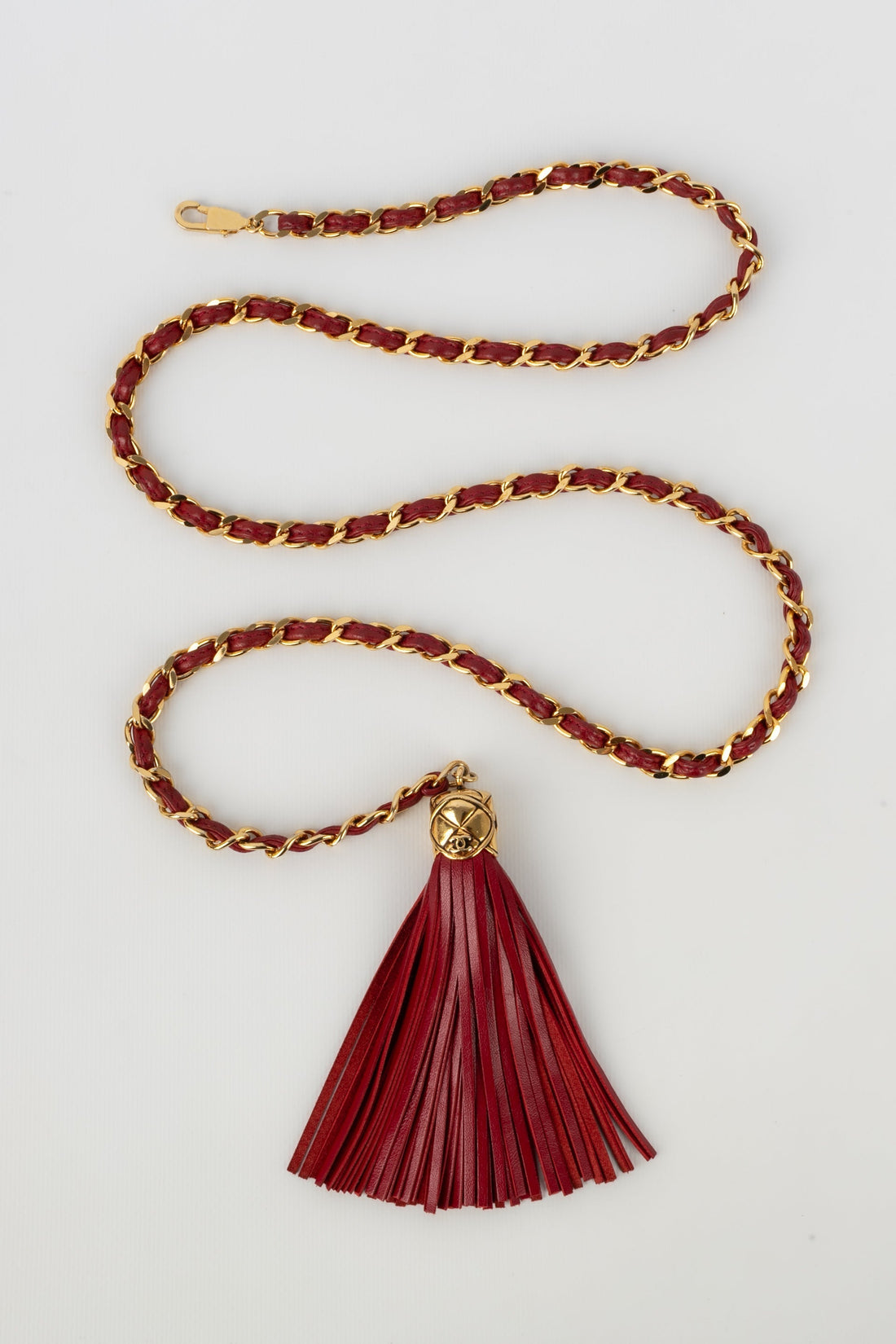 CHANEL -Ceinture en métal doré entrelacé de cuir rouge datant des années 1980. Condition :...