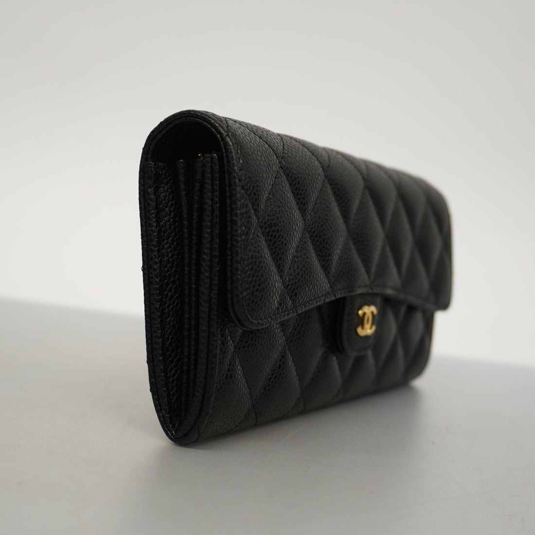 CHANEL Matelasse Bi-fold Long Wallet Gold Metal Fittings Women's Caviar