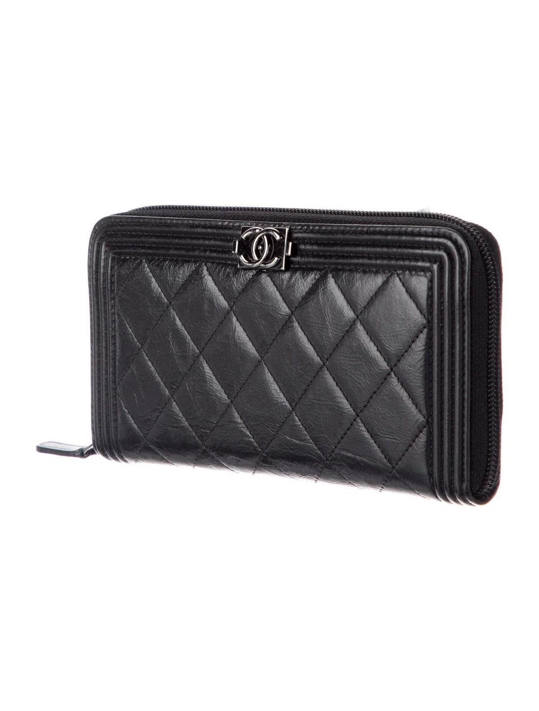 CHANEL QUILTED LAMBSKIN BOY ZIP AROUND WALLET