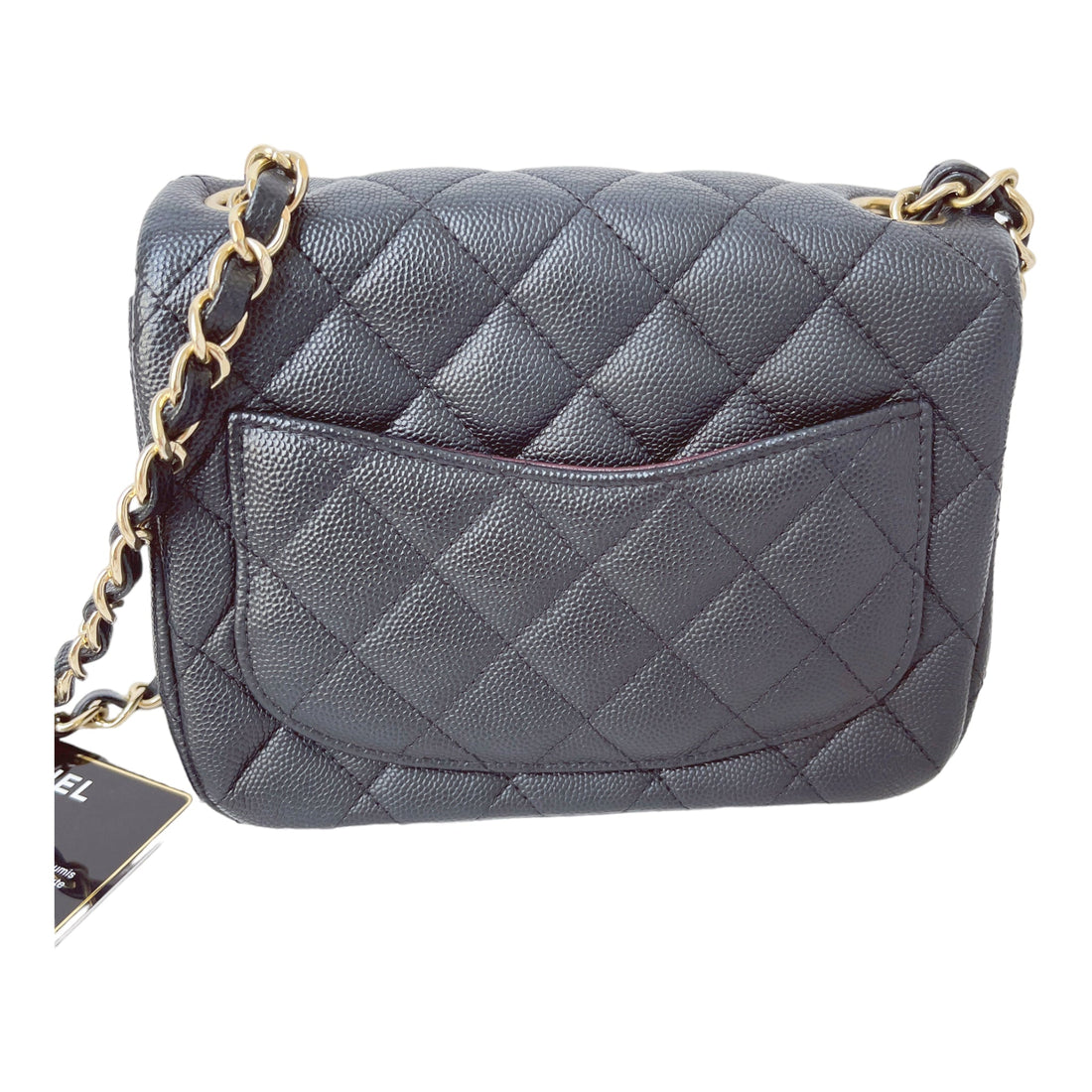 Chanel Quilted Mini Square Flap Black Caviar Gold Hardware 17B