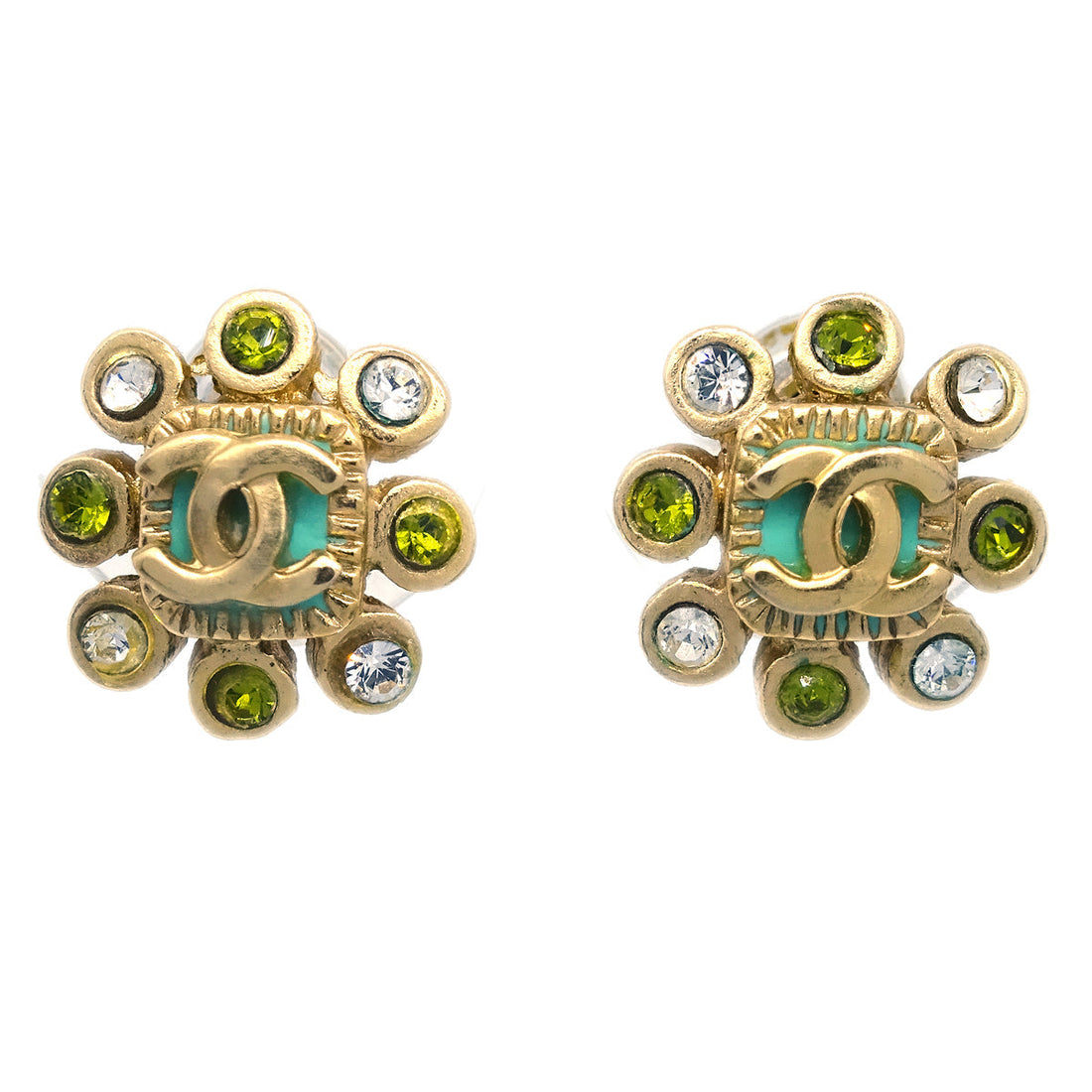 Chanel Rhinestone Earrings Clip-On Gold 2137