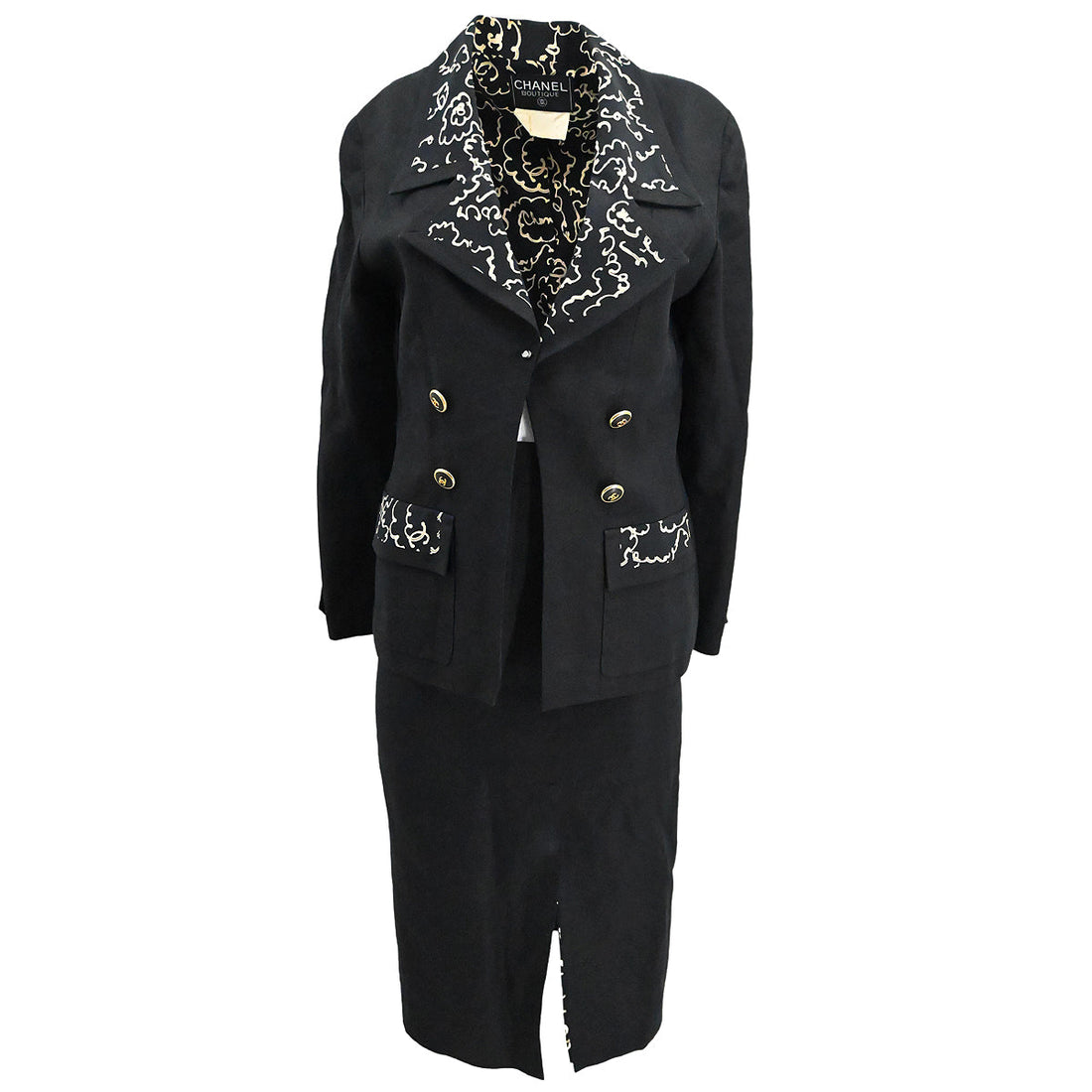 Chanel Setup Suit Jacket Skirt Black 00T #38