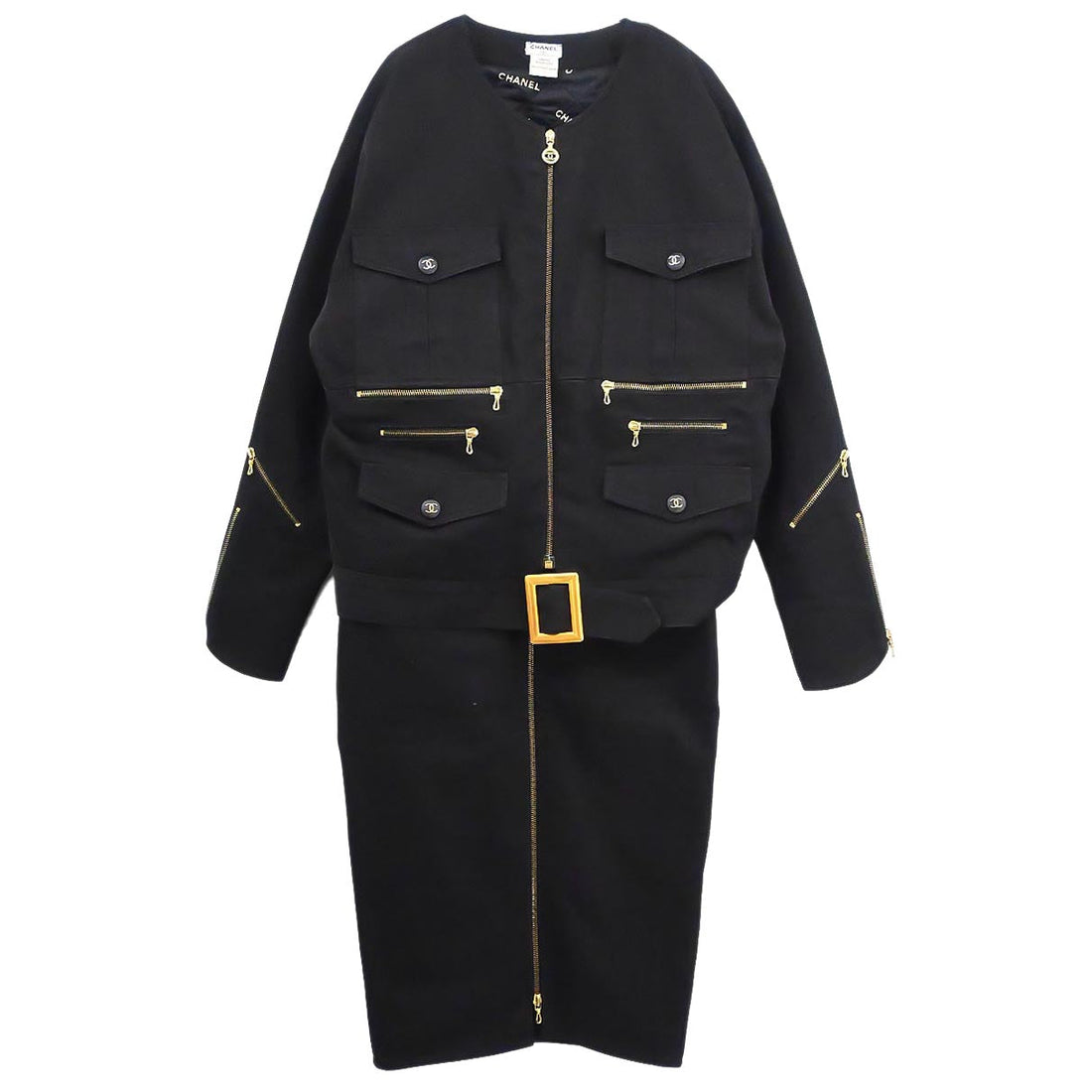 Chanel Setup Suit Jacket Skirt Black 93P #38