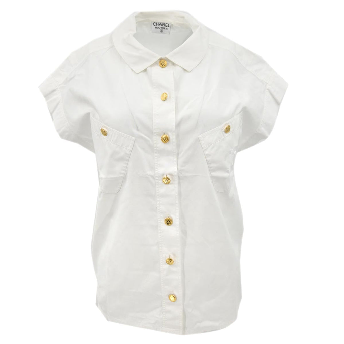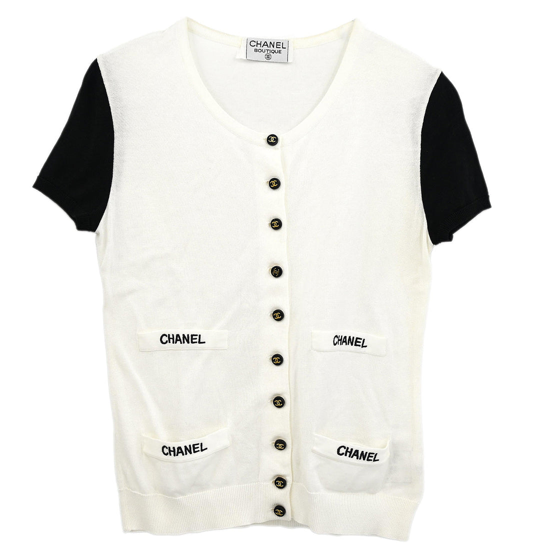 Chanel Short Sleeve Sweater Knit Top Ivory 01C #46