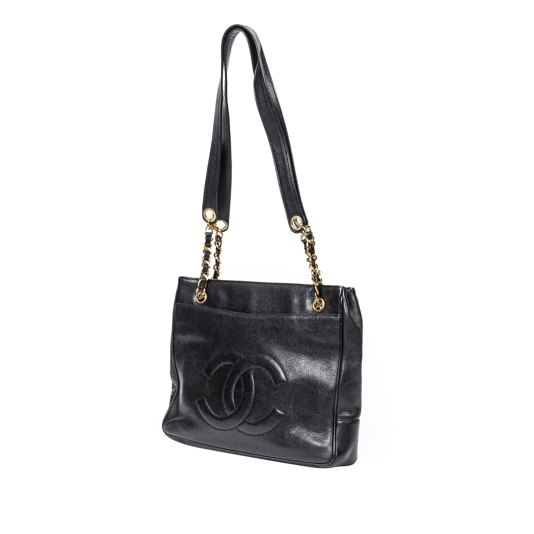 Product Details: Black Chanel Caviar CC Tote. This tote bag features a caviar leather body,...
