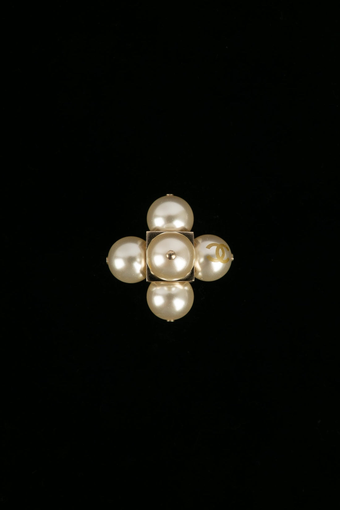 CHANEL - Bague en m�tal dor� d�cor� de fleur en r�sine dans les tons de...