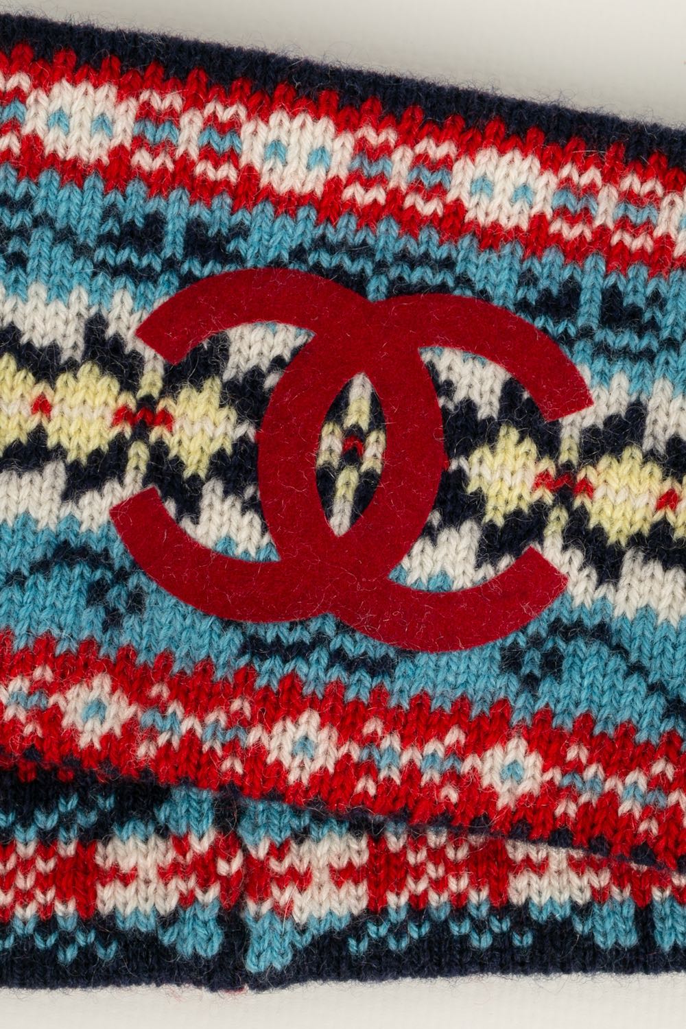 CHANEL -Bandeau en laine rouge et bleu. Aucune �tiquette de taille ou de composition pr�sentes....