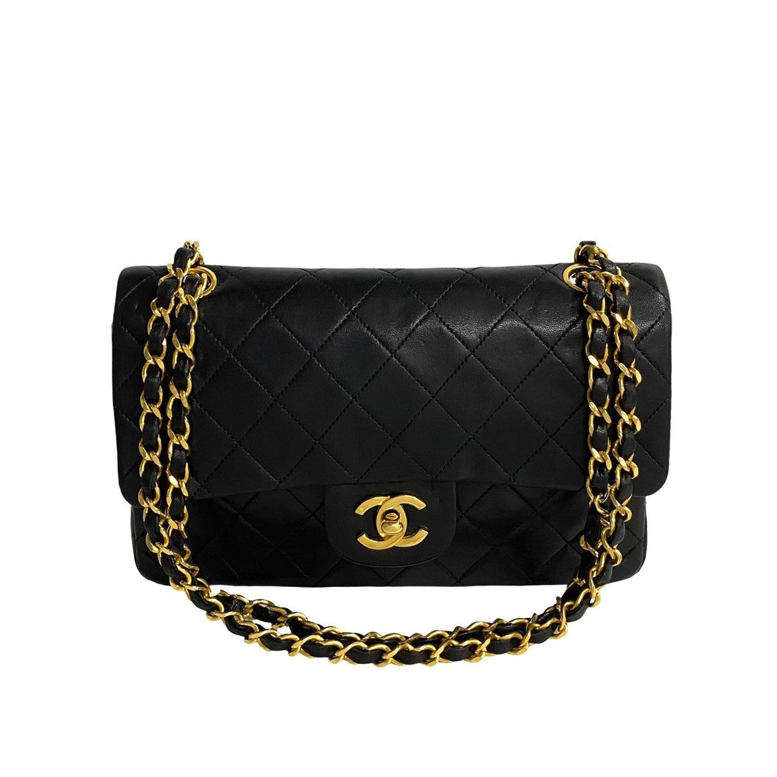 An CHANEL Small Chain Shoulder Bag Clutch Black Quilted Flap made of black Lambskin j60...