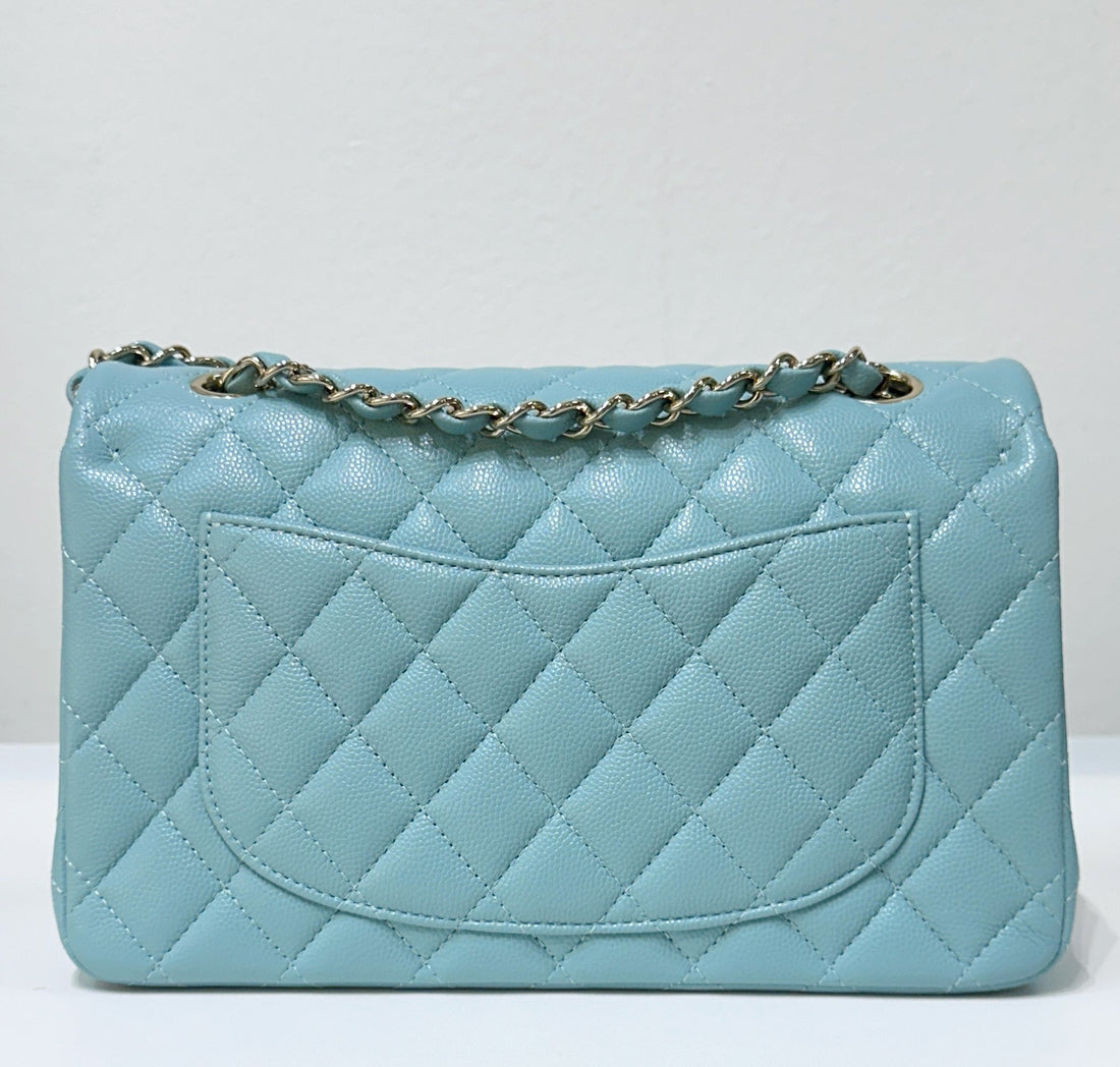 Chanel Small Classic Caviar Double Flap Tiffany Blue 20C GHW