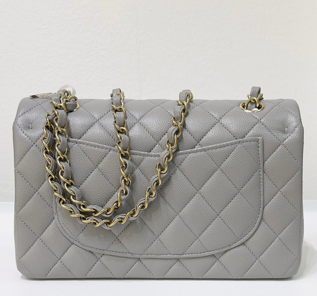 Chanel Small Caviar Quilted Double Flap Grey LGHW
