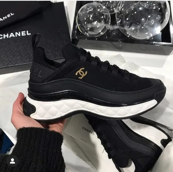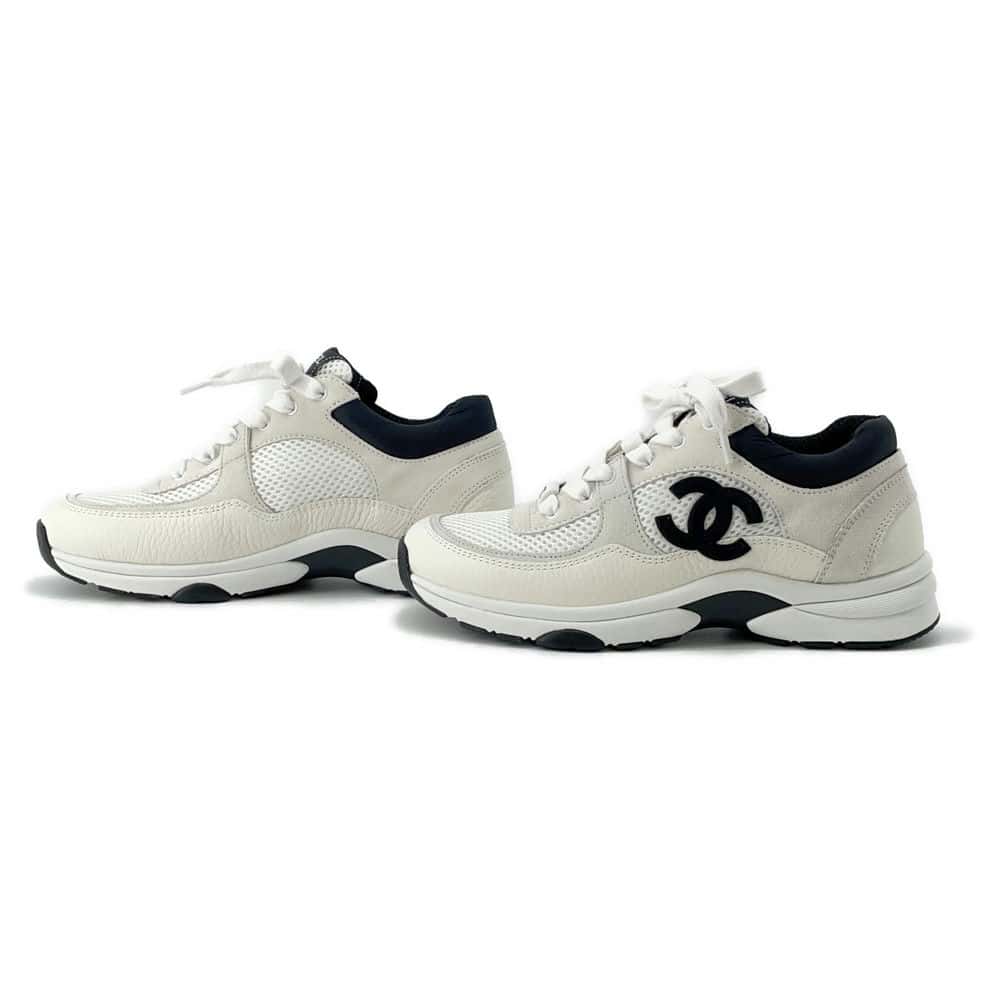 CHANEL Sneakers White/Black G38299 Mesh Suede Leather Size 36