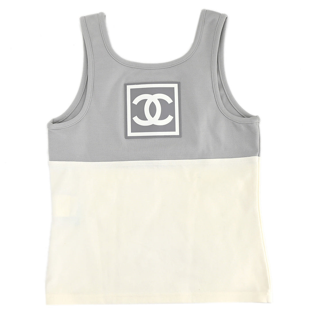 Chanel Sport Line Sleeveless Top Gray White 01P #38