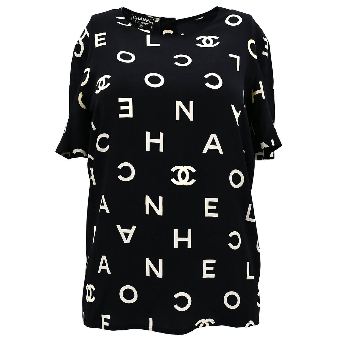 Chanel Spring 1997 Short Sleeve Shirt Blouse Tops Black 97P #38