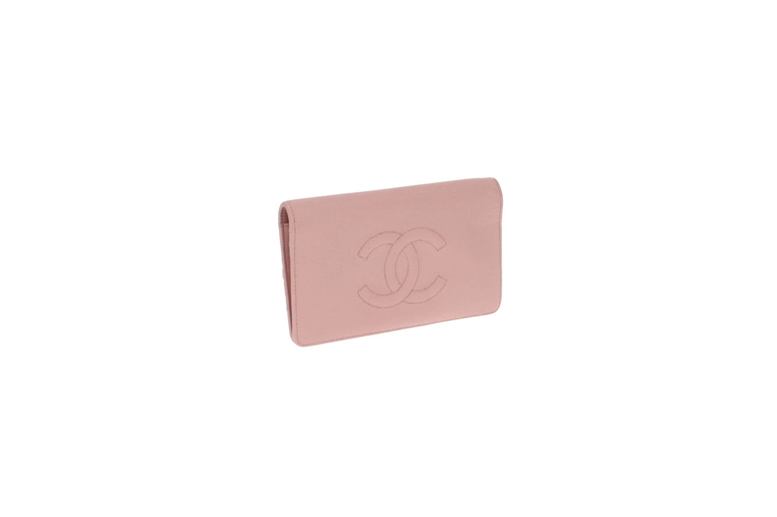 Keep your money stylish and secure with the Chanel Timeless Pink Caviar Flap wallet. Made...