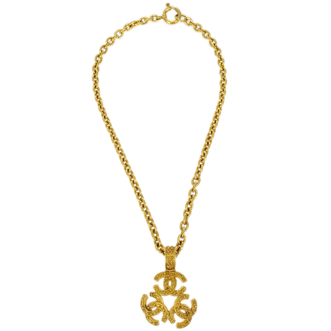 Chanel Triple CC Chain Pendant Necklace Gold 94A