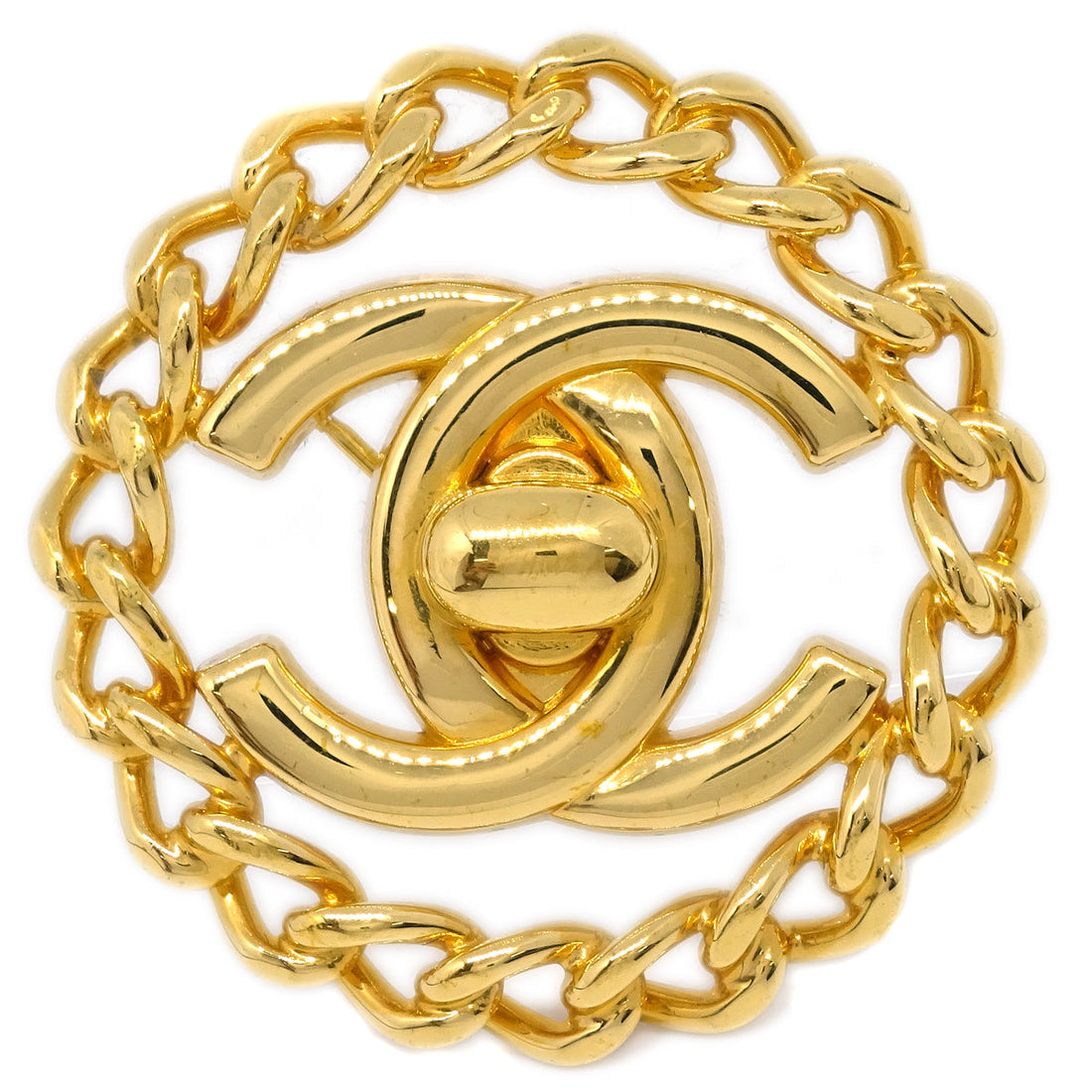 CHANEL Turnlock Brooch Pin Gold 96P 13250