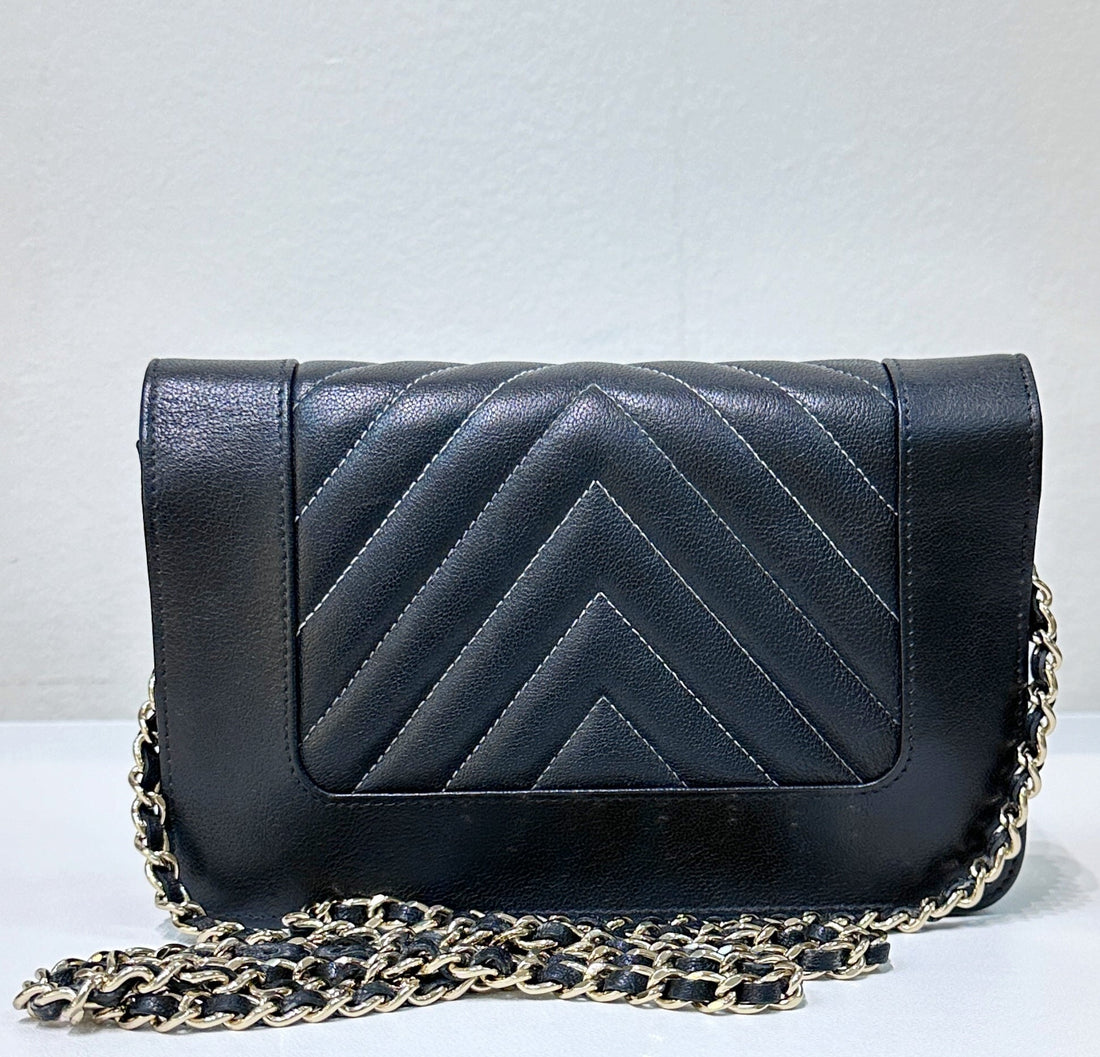Chanel V Stitch Calfskin Chain wallet Black GHW