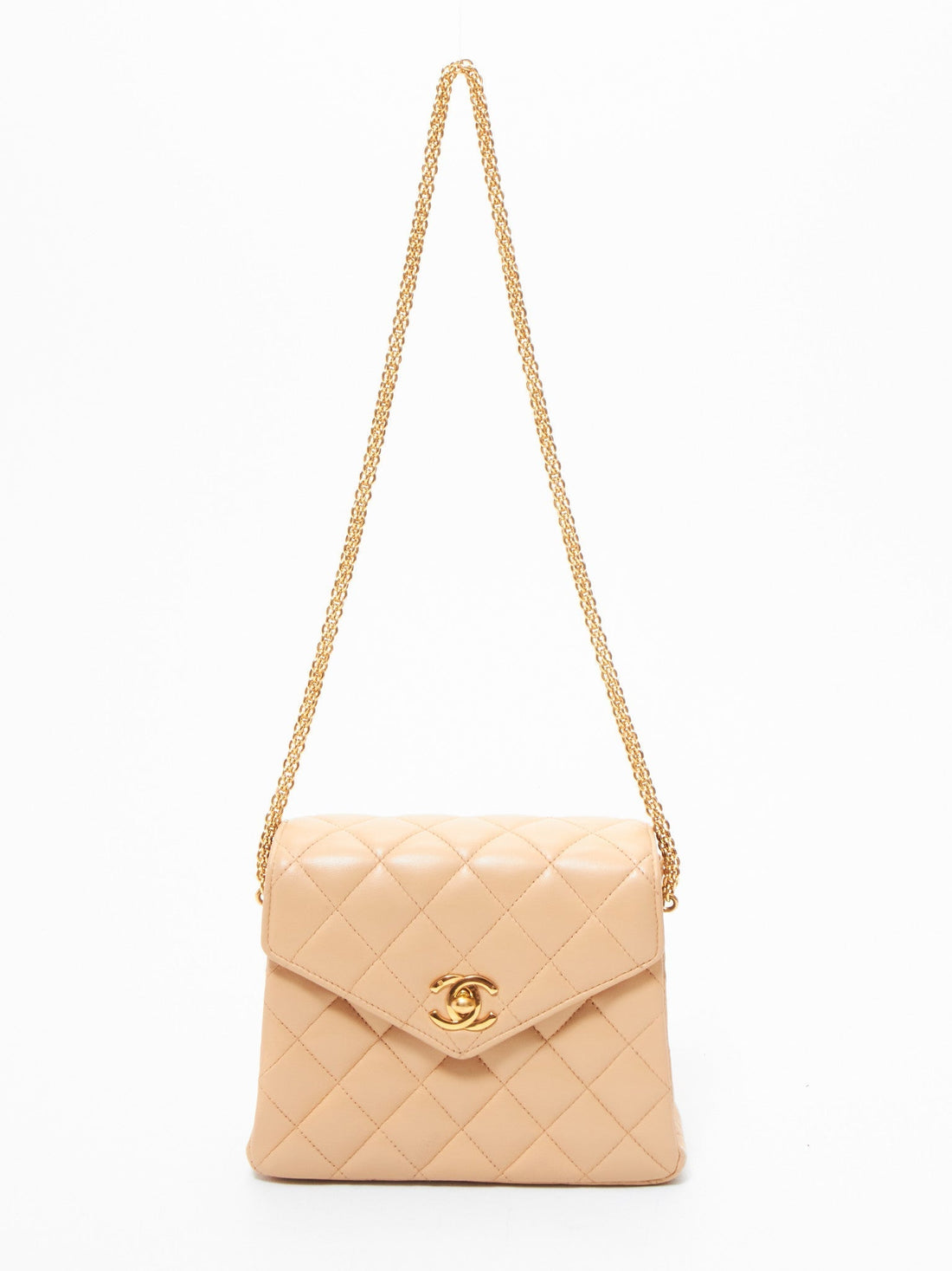 Chanel Vintage Beige Lambskin Mini Envelope Flap Bag GHW