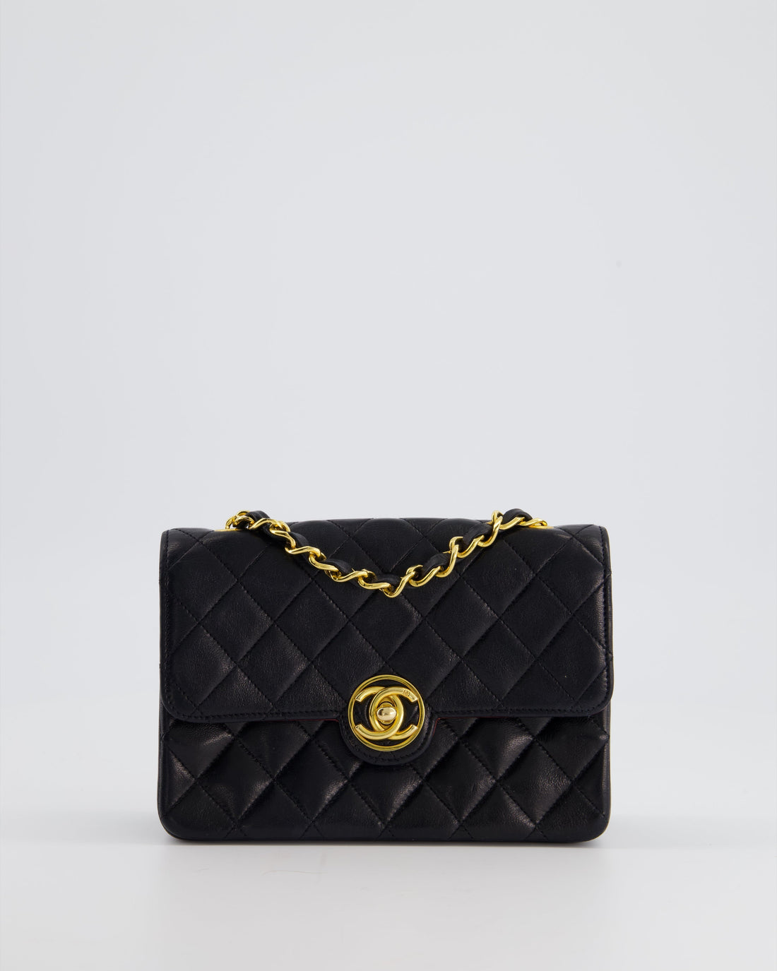 Chanel Vintage Black Mini Square Bag in Lambskin Leather with 24k Gold Hardware