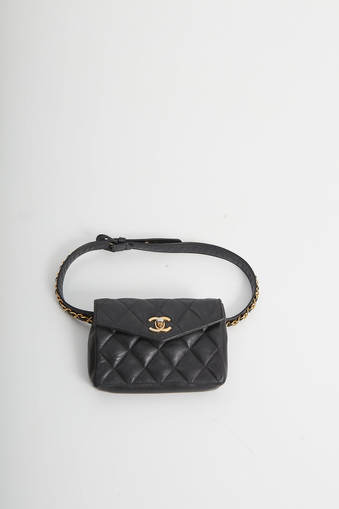 Chanel Vintage Black Quilted Lambskin Waist Belt Bag GHW