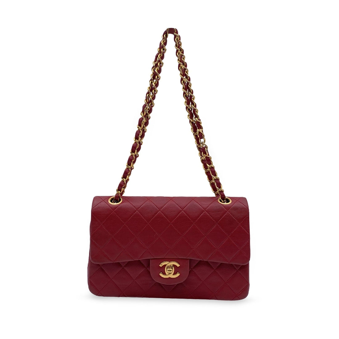 Chanel Vintage Red Quilted Timeless Classic Small 2.55 Bag 23 Cm