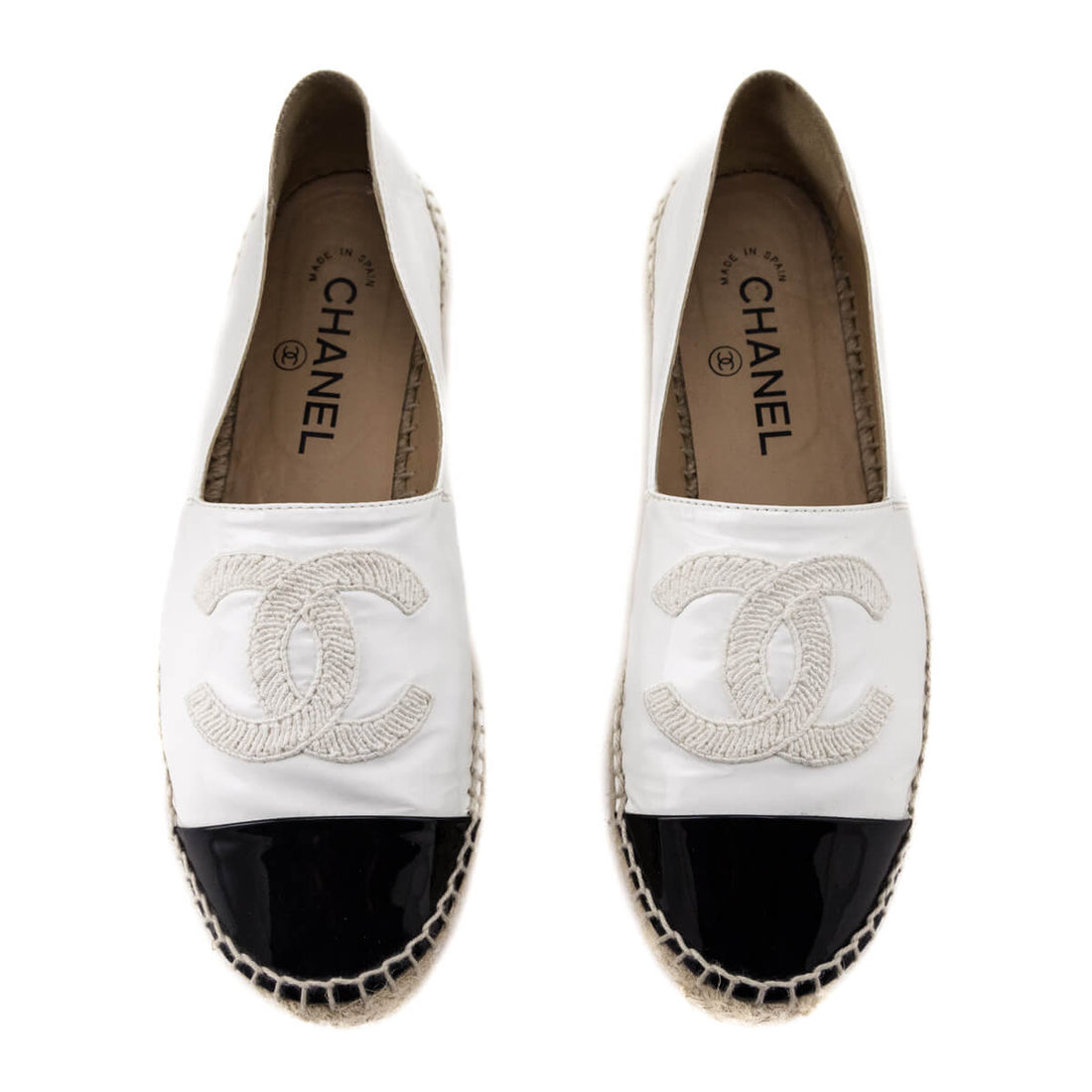 Chanel White & Black Patent Leather CC Espadrilles Size 7 | EU 37