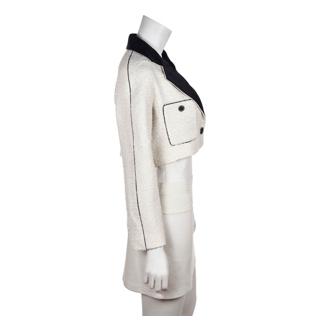 Chanel White & Black Tweed Cropped Jacket Size S | FR 38