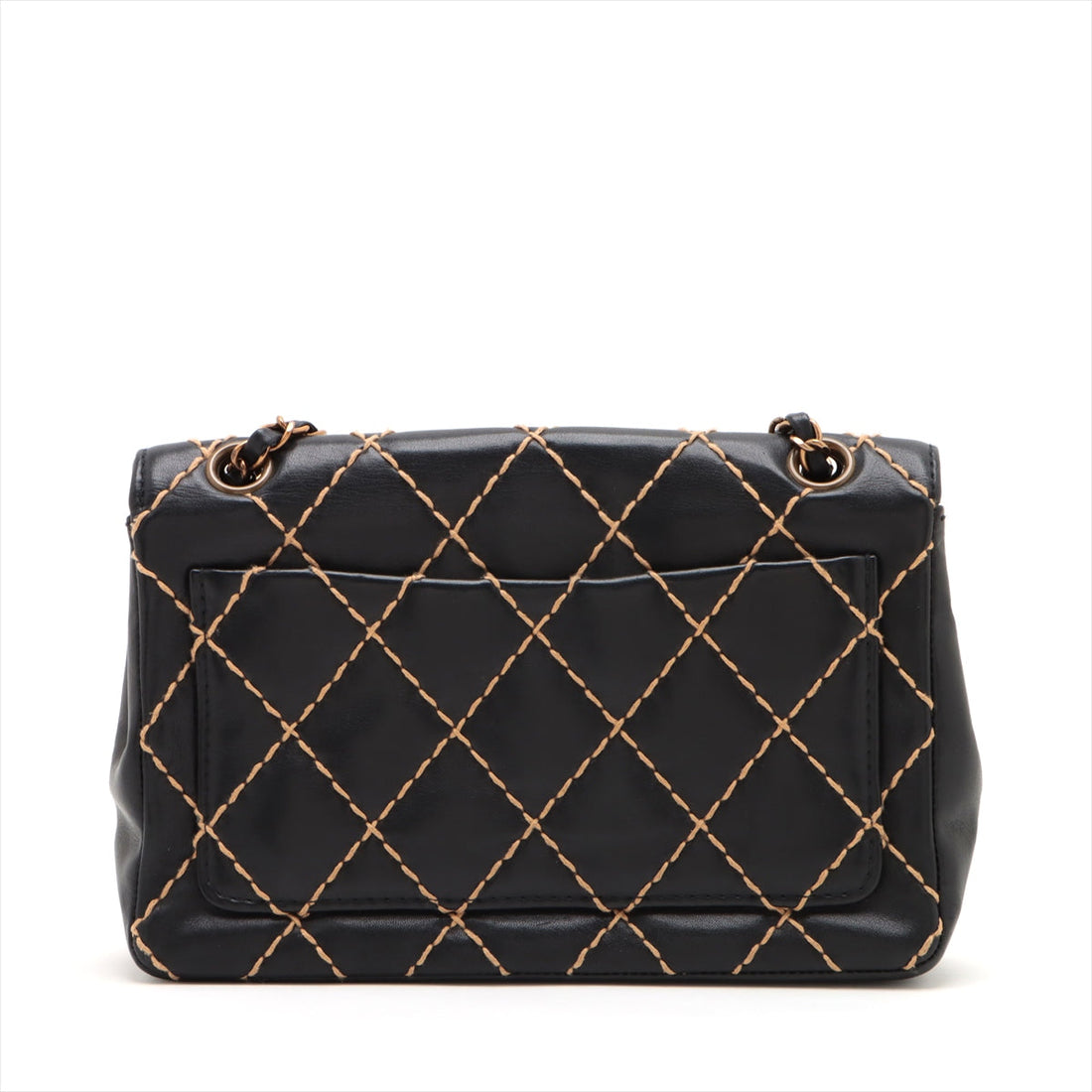 Chanel Wild Stick Single Flap Double Chain Bag Black G 6th