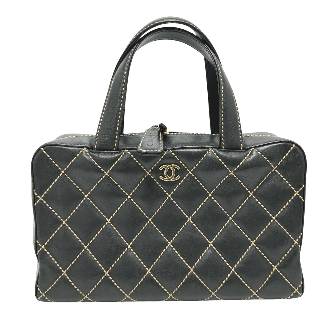 CHANEL Wild Stitch Handbag Boston Bag Leather Black A14692
