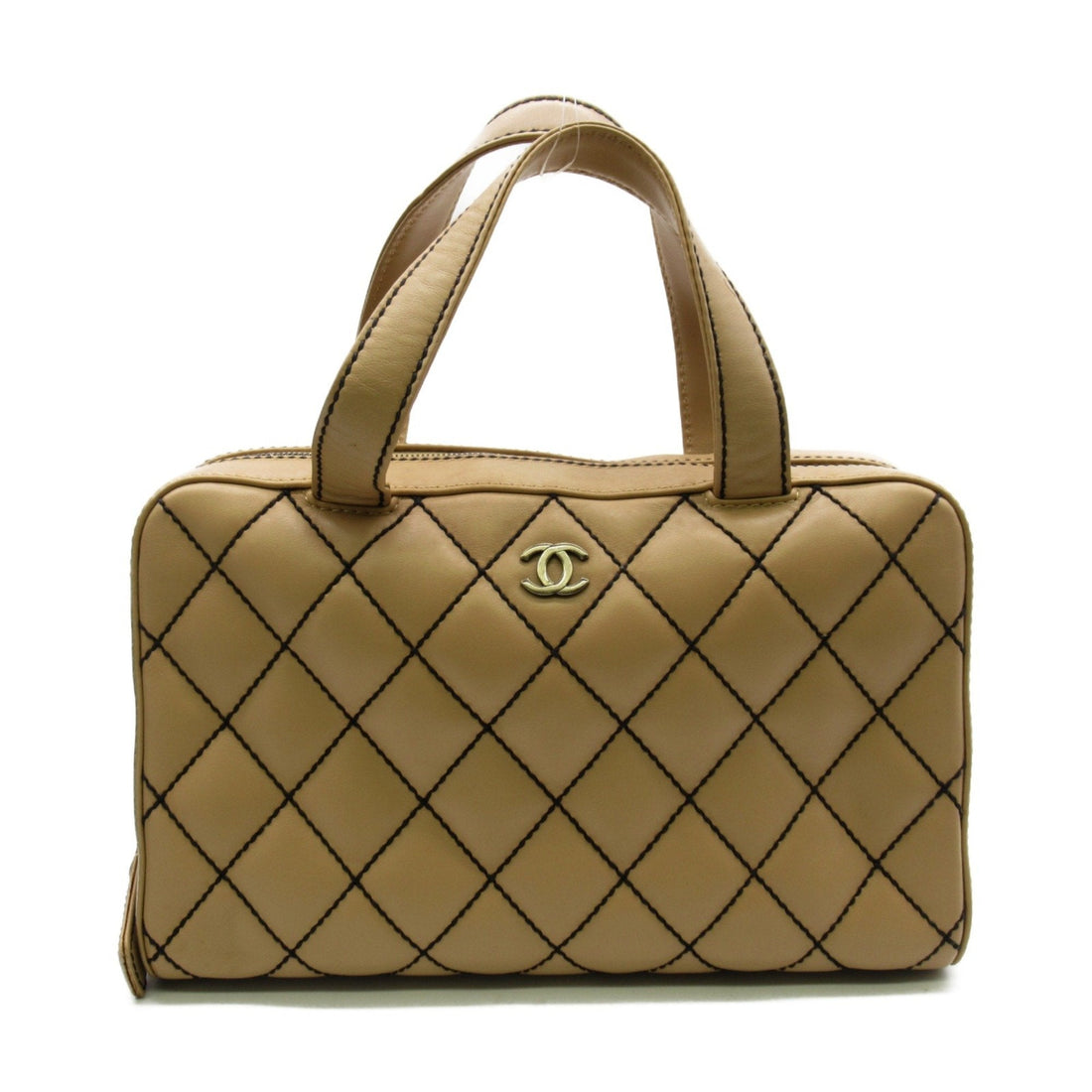 Chanel Wild Stitch HandBag Boston Bag Leather Beige A14692