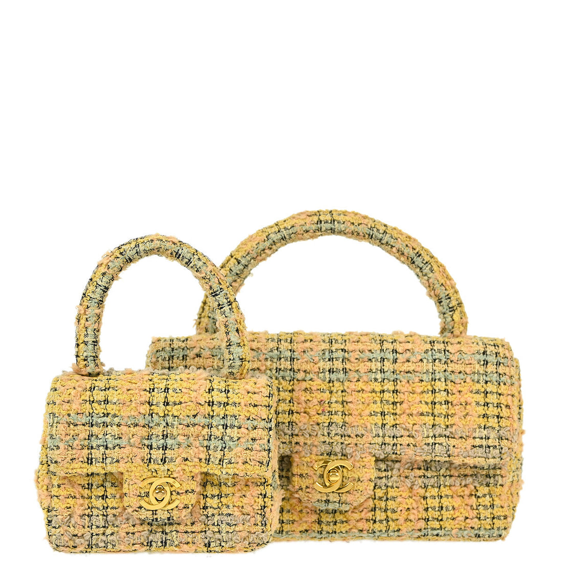 Chanel Yellow Tweed Classic Single Flap 2 in 1 Hand Bag Set