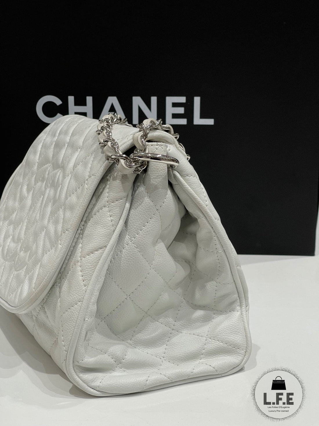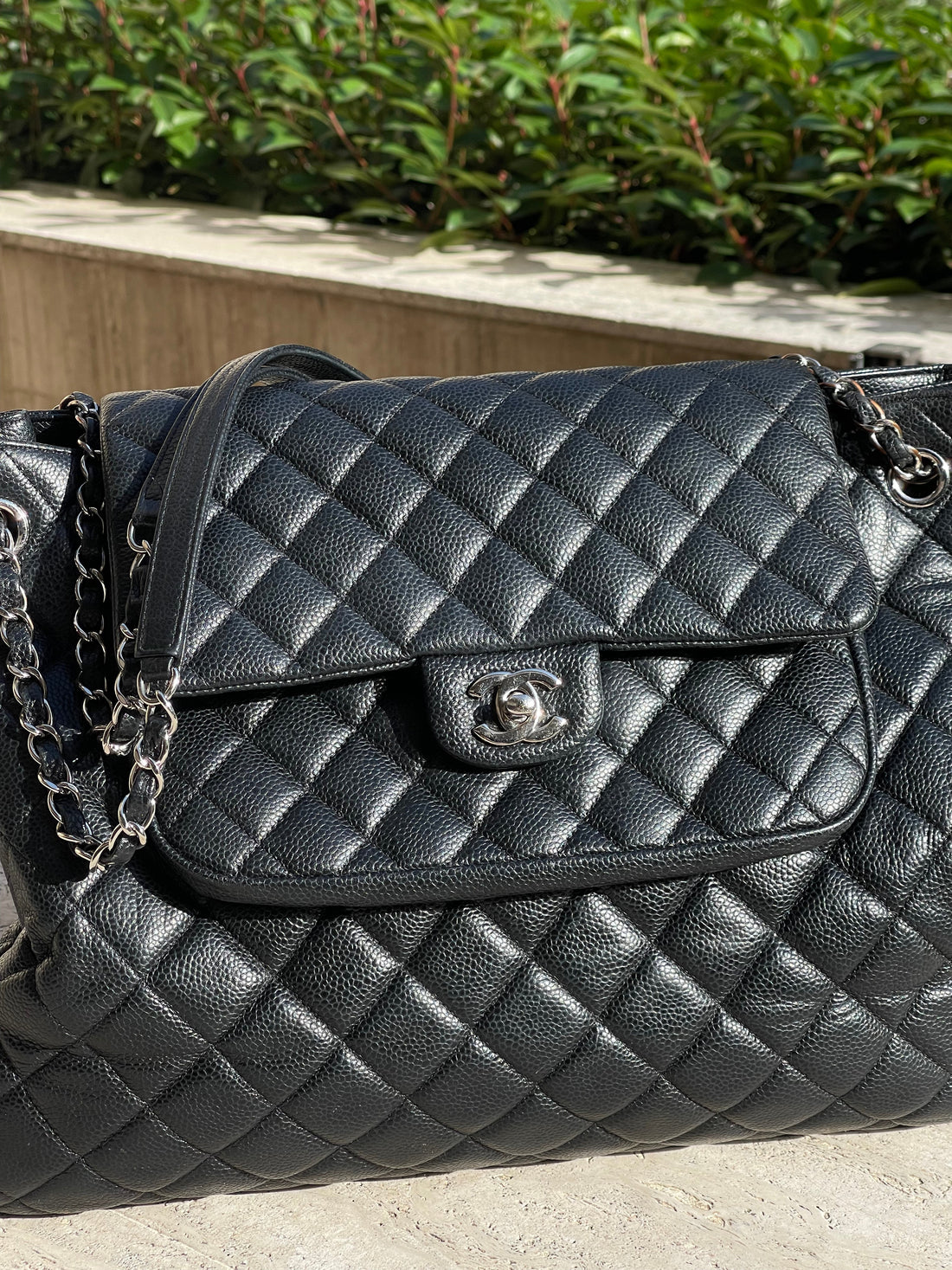 CHANEL - CC Ligne Flap Large Bag Black / Silver Caviar Leather Shoulder Bag ...