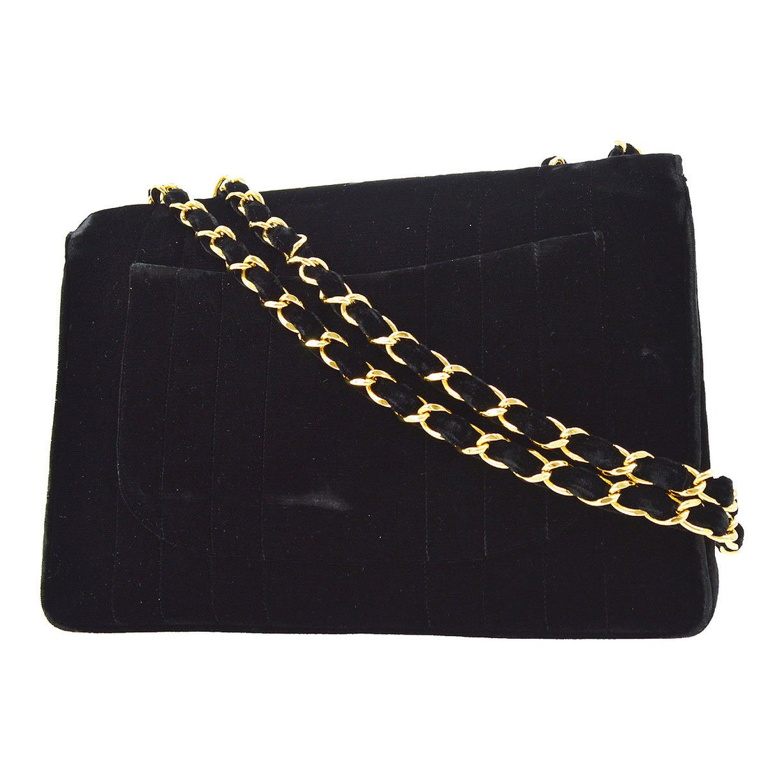 Chanel? 1994-1996 Black Velvet Vertical Classic Flap Jumbo ao28029