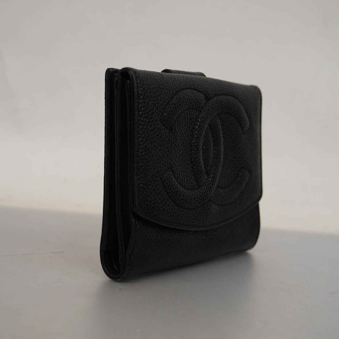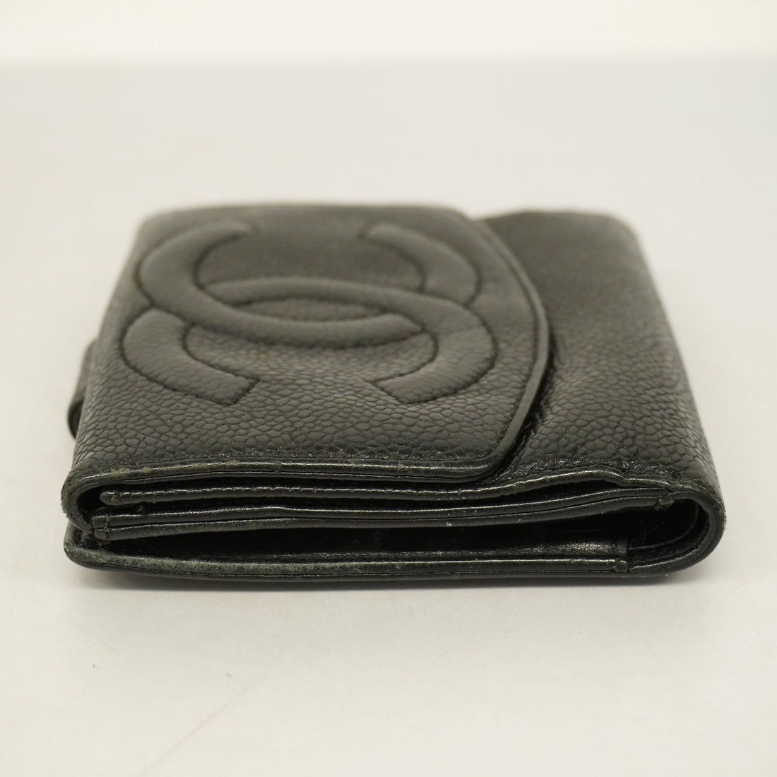 ChanelAuth Gold Hardware Women's Caviar Leather Wallet [bi-fold] Black