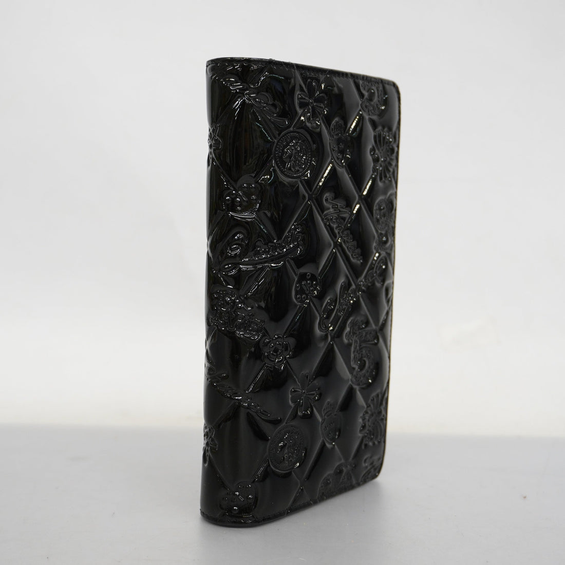 ChanelAuth Icon Silver Metal Fittings Women's Patent Leather Long Wallet