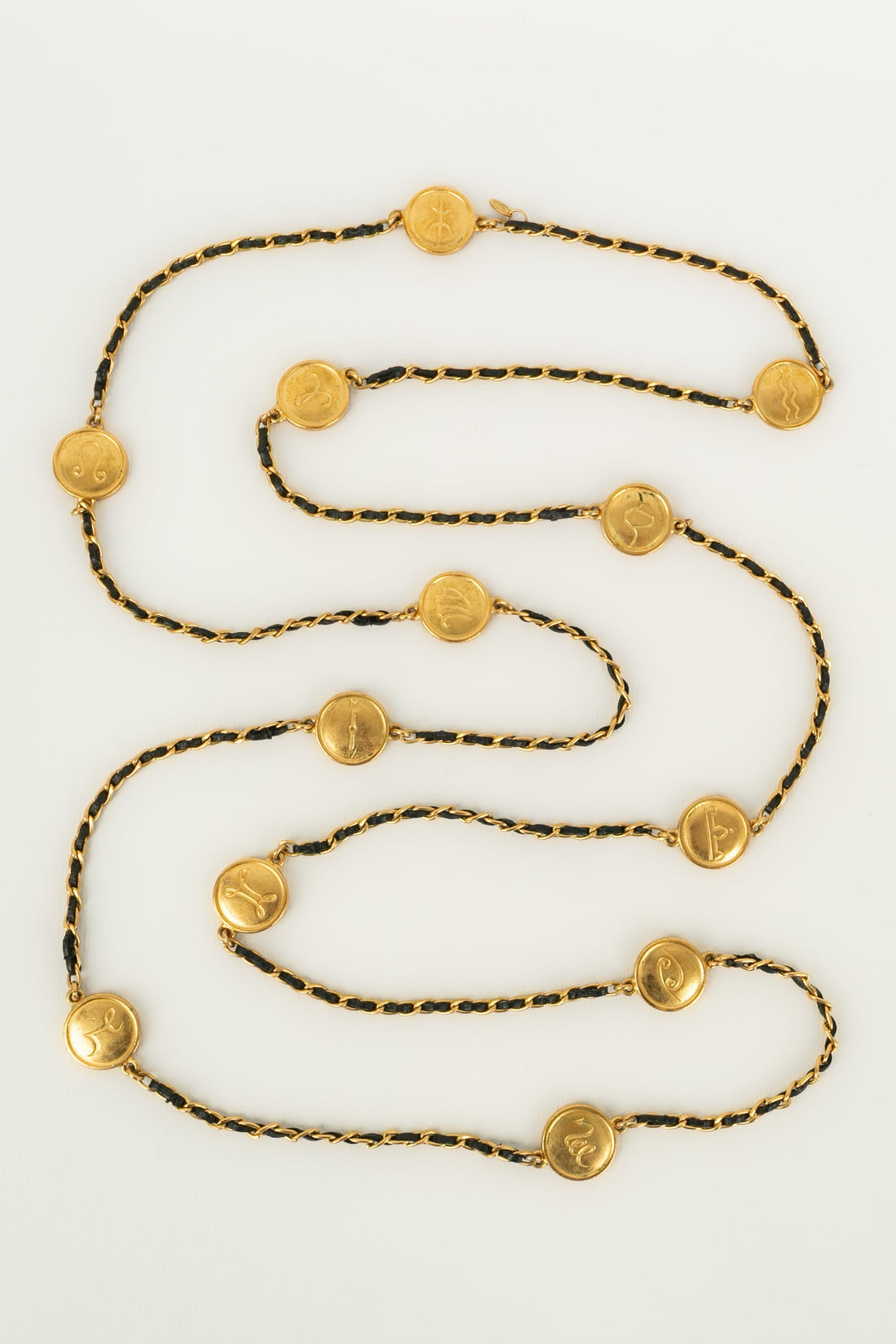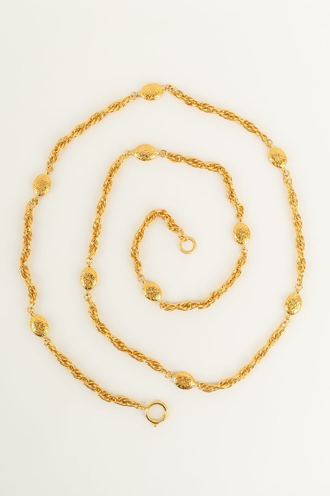 CHANEL - (Made in France) Collier / sautoir en métal doré et médailles losanges. Bijou...