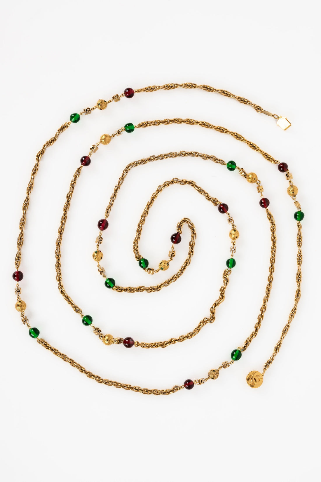 CHANEL - (Made in France) Sautoir de perles nacrées fantaisies, métal doré et pâte de...