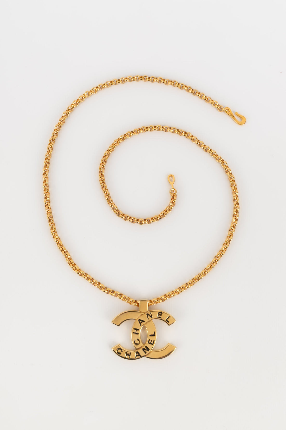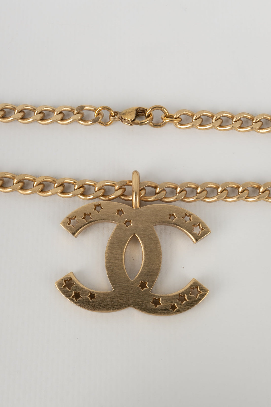 CHANEL - (Made in France) Collier en métal doré et son pendentif cc ajouré d'étoiles....