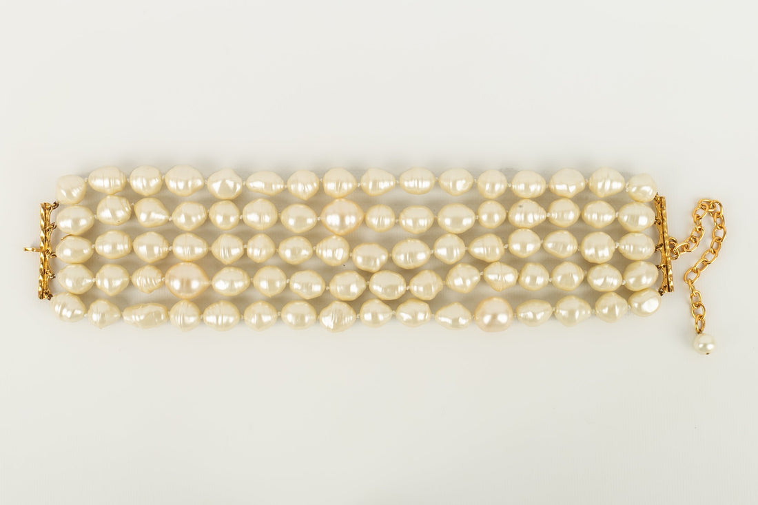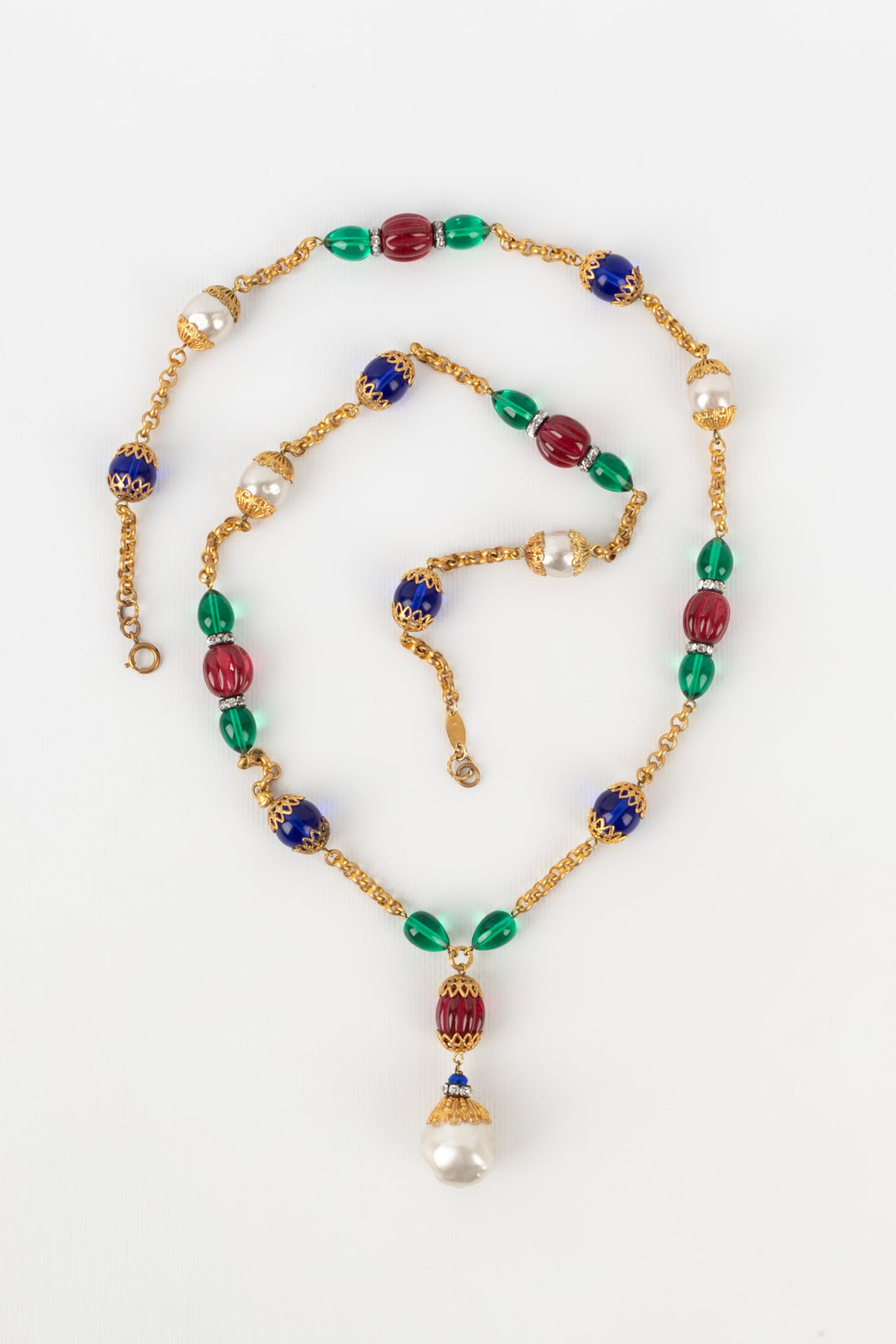 CHANEL - (Made in France) Collier en métal doré, perles nacrées fantaisies et perles de...