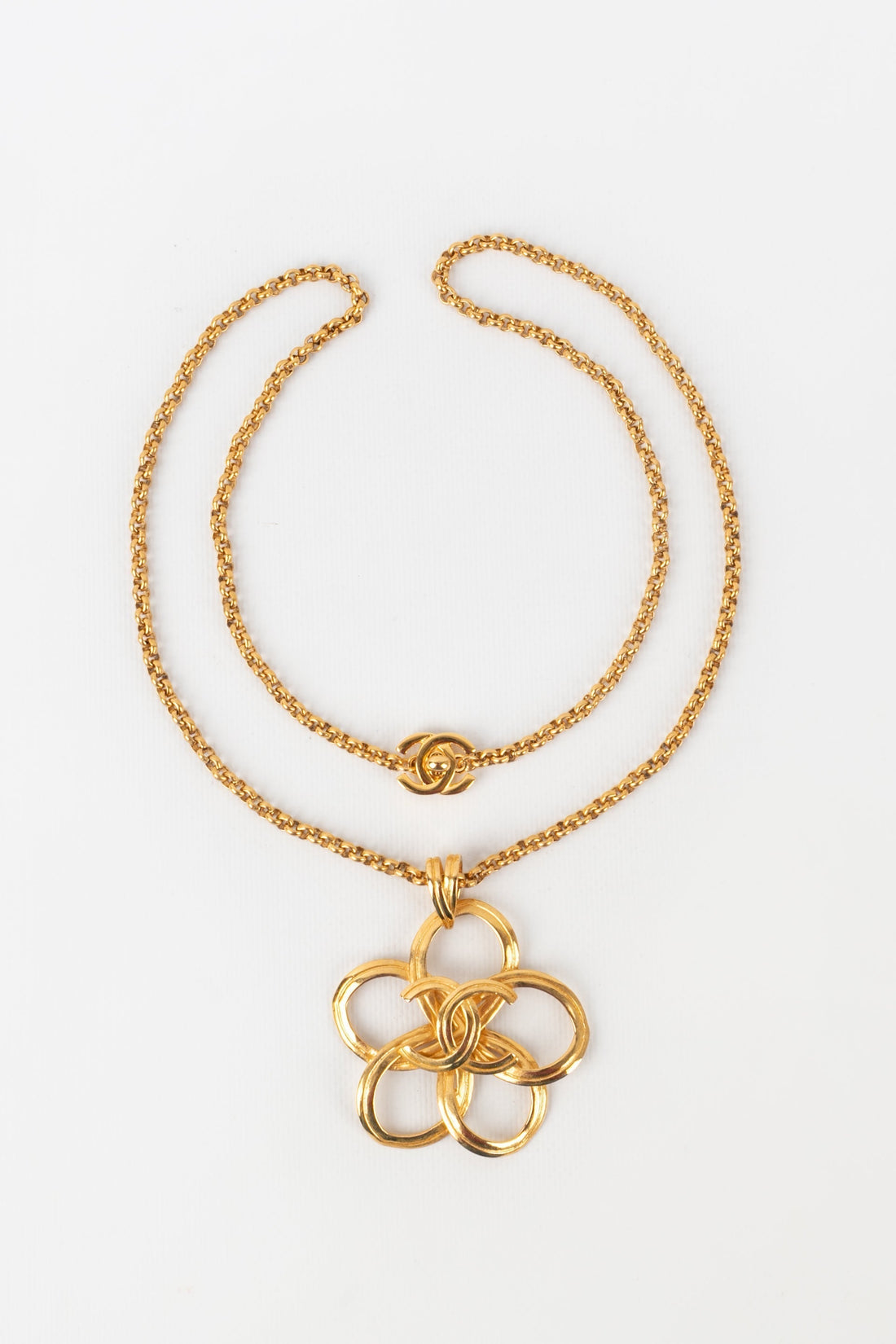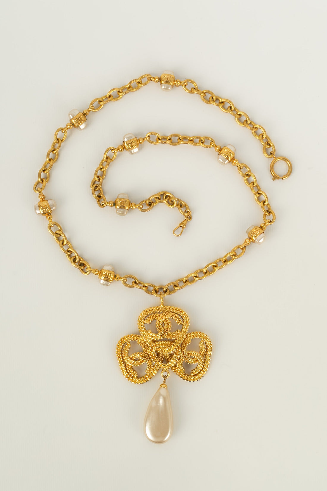 CHANEL - (Made in France) Collier pendentif en métal doré. Collection Printemps-Eté 1996. Condition :...