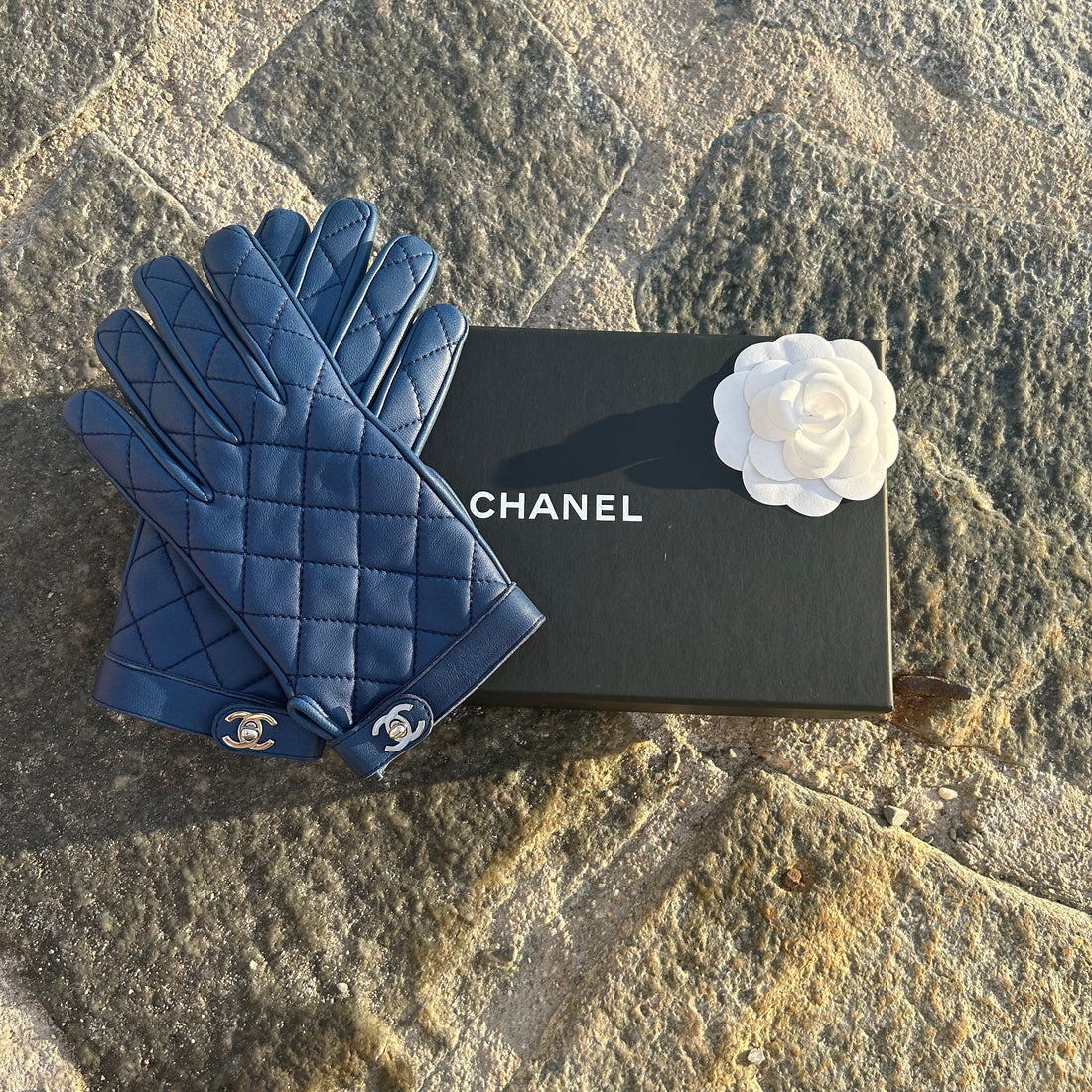 Sublime gants en cuir d’agneau souple bleu électrique de la maison Chanel avec accastillage argenté....