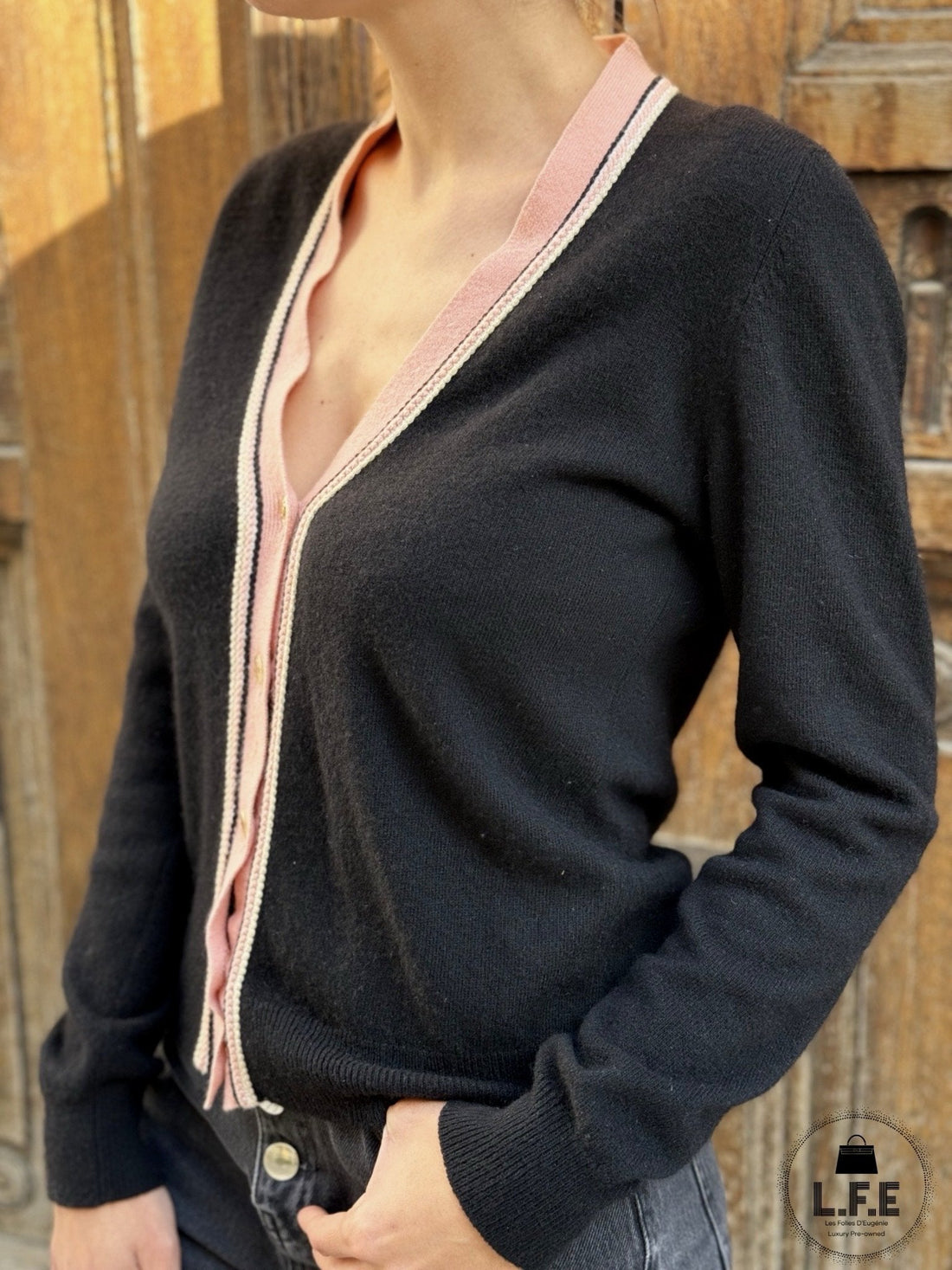 Gilet en 100% cachemire de la Maison Chanel manches longues, boutons avec CC doré et...