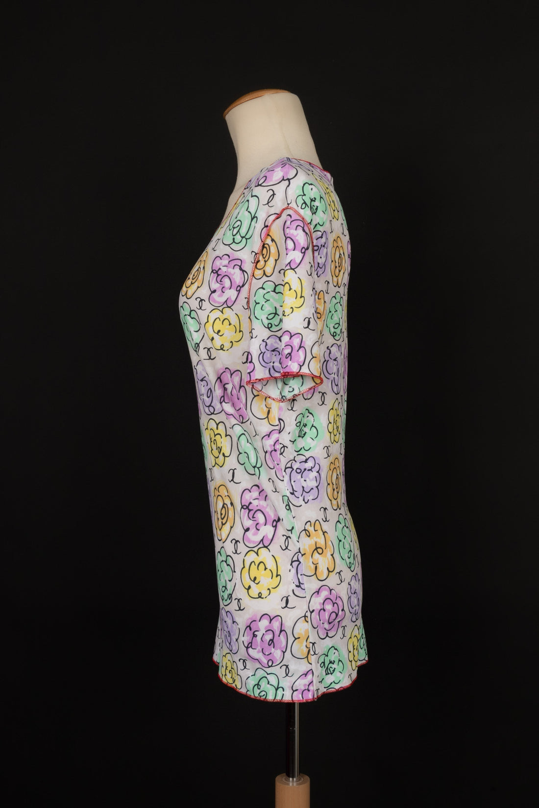 CHANEL - Chemisier en soie noire imprimé de bijoux. Aucune étiquette de taille ou de...