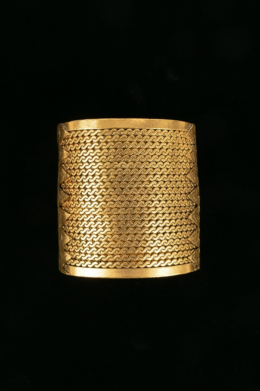 CHANEL -Manchette en m�tal dor� grav�. Collection 1984. Condition : Tr�s bon �tat Dimensions :...