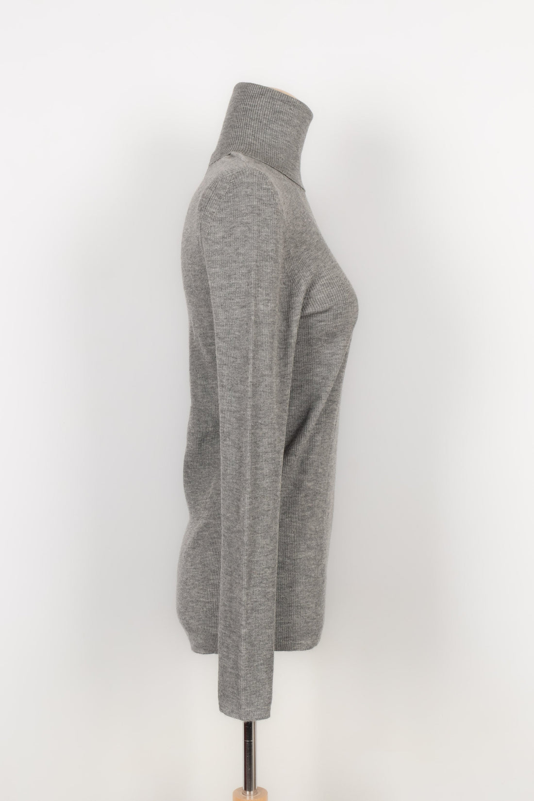 CHANEL - Pull col roul� en cachemire gris. Pas de taille indiqu�e, il convient �...
