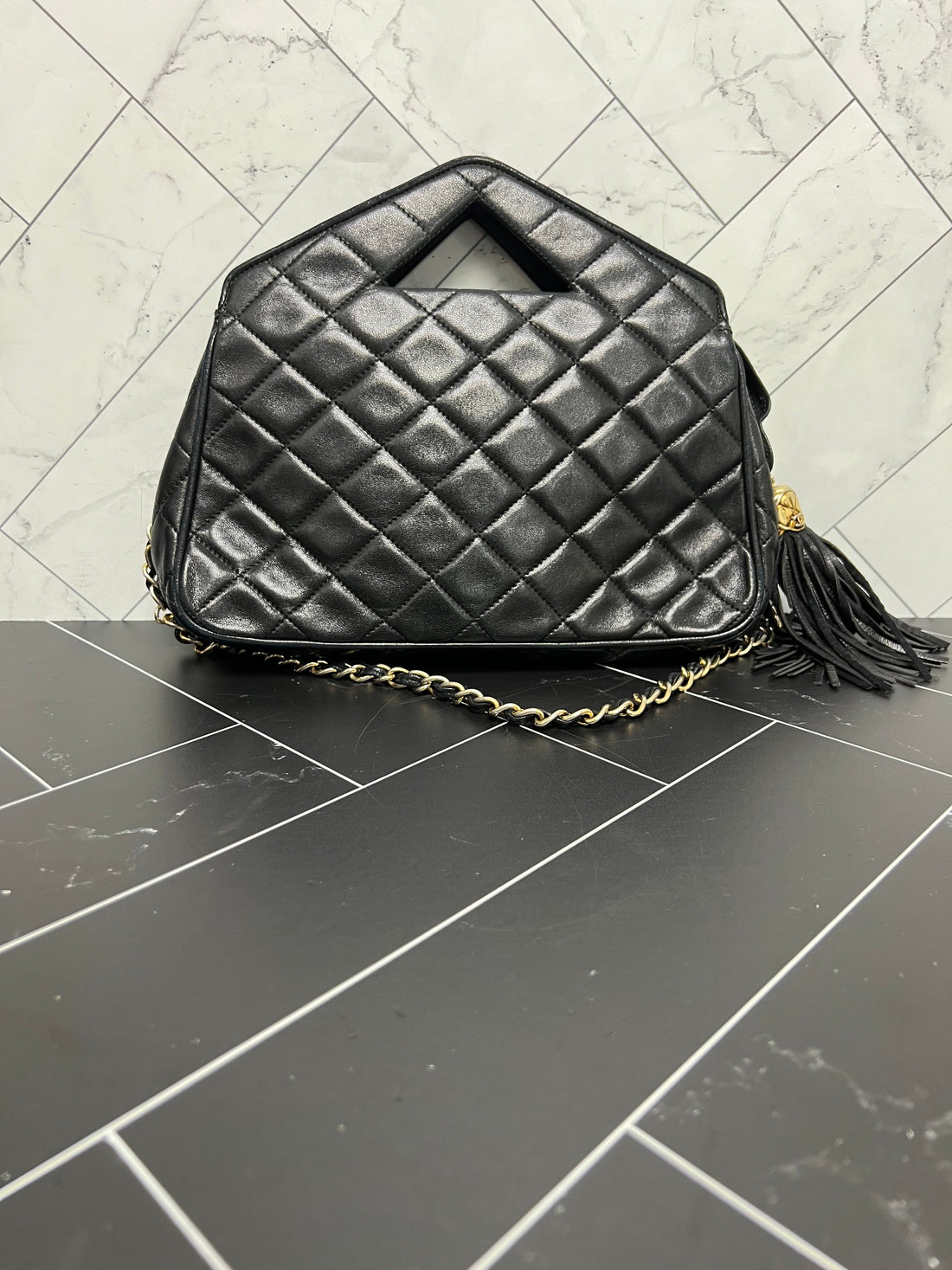 RARE Chanel Black Quilted Lambskin Chain Sling