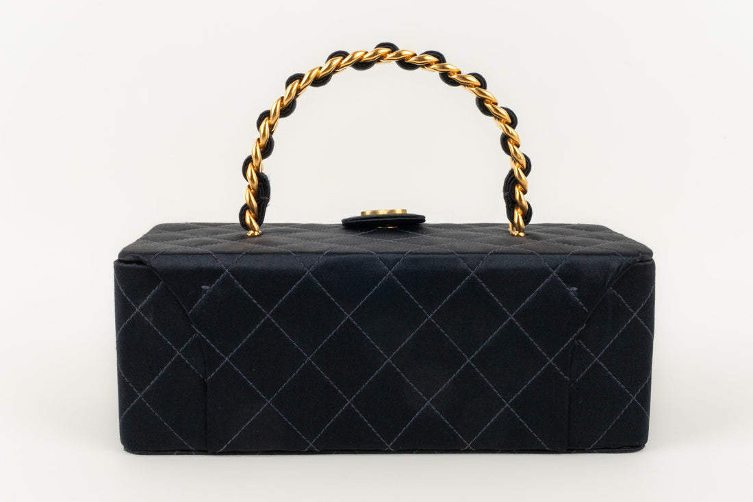 CHANEL - (Made in France) Sac en satin de soie matelassé, attributs en métal doré....